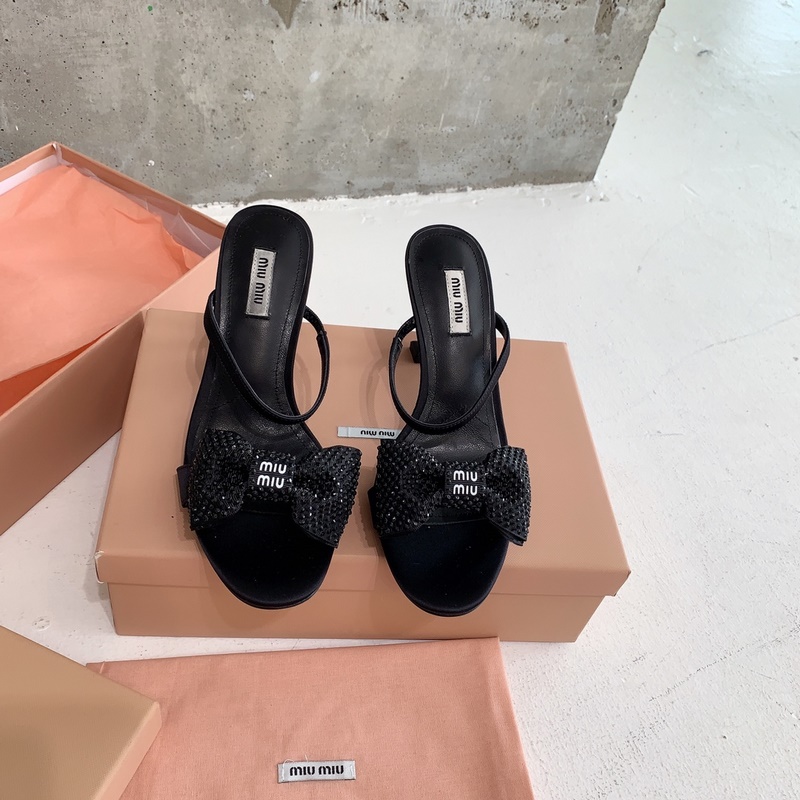 Sandalias Miu Miu 23SS de tacón alto con lazo para principios de primavera, calidad prémium