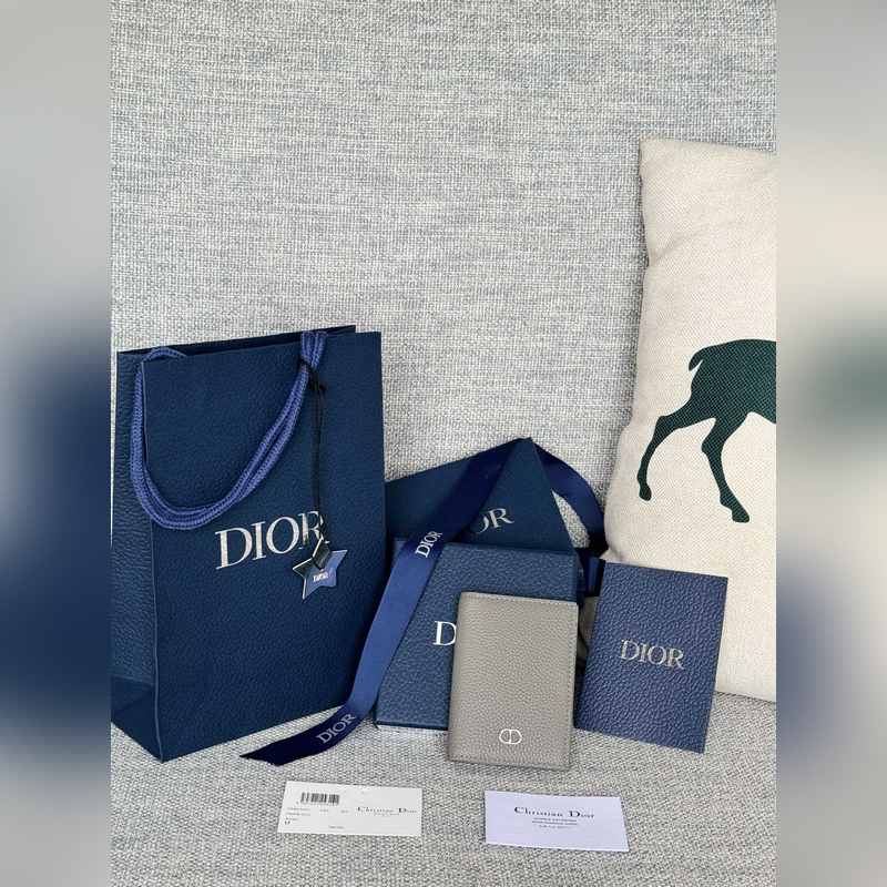 Tarjetero doble plegable para hombre con estampado de lichi oblicuo de Dior