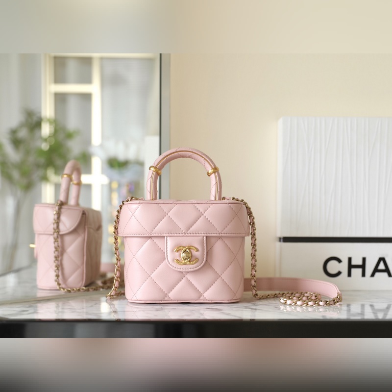 Nueva serie primavera-verano, bolso de maquillaje con forma de anillo pequeño, réplica en rosa claro