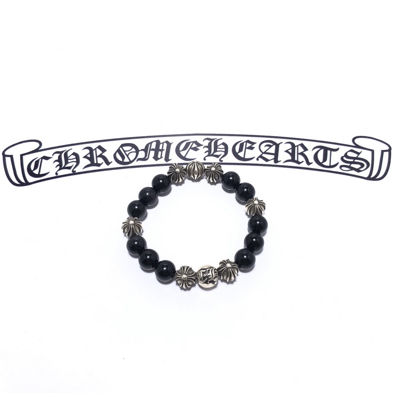 Pulsera de obsidiana negra plateada con 8 corazones cromados y cuentas sólidas auténticas