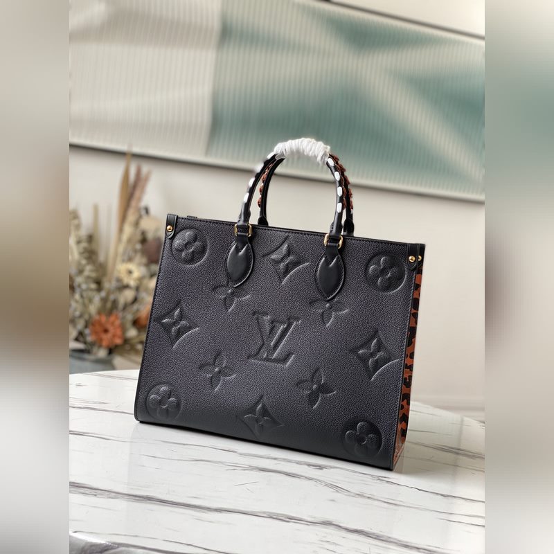 Bolso tote con estampado de leopardo negro LV ONTHEGO M45595