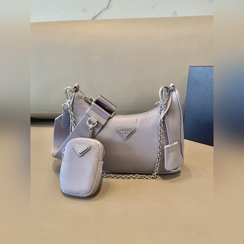 Réplica del bolso hobo de nailon Prada 1BH204 en color morado glicina