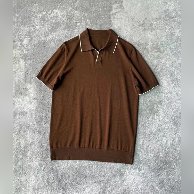 BVLGARI Polo minimalista de calidad con cuello en V, corte entallado, versátil y elegante