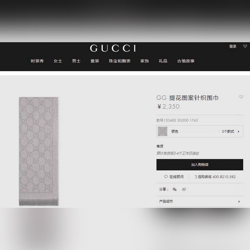 Chal ligero unisex clásico Gucci GG Estilo atemporal