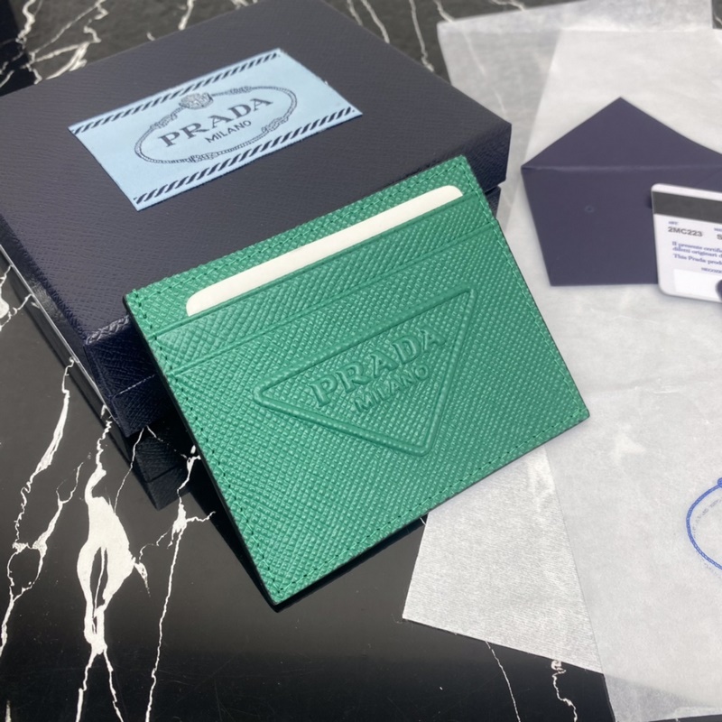 Tarjetero Prada de piel saffiano 2MC223 de primera calidad y diseño minimalista.