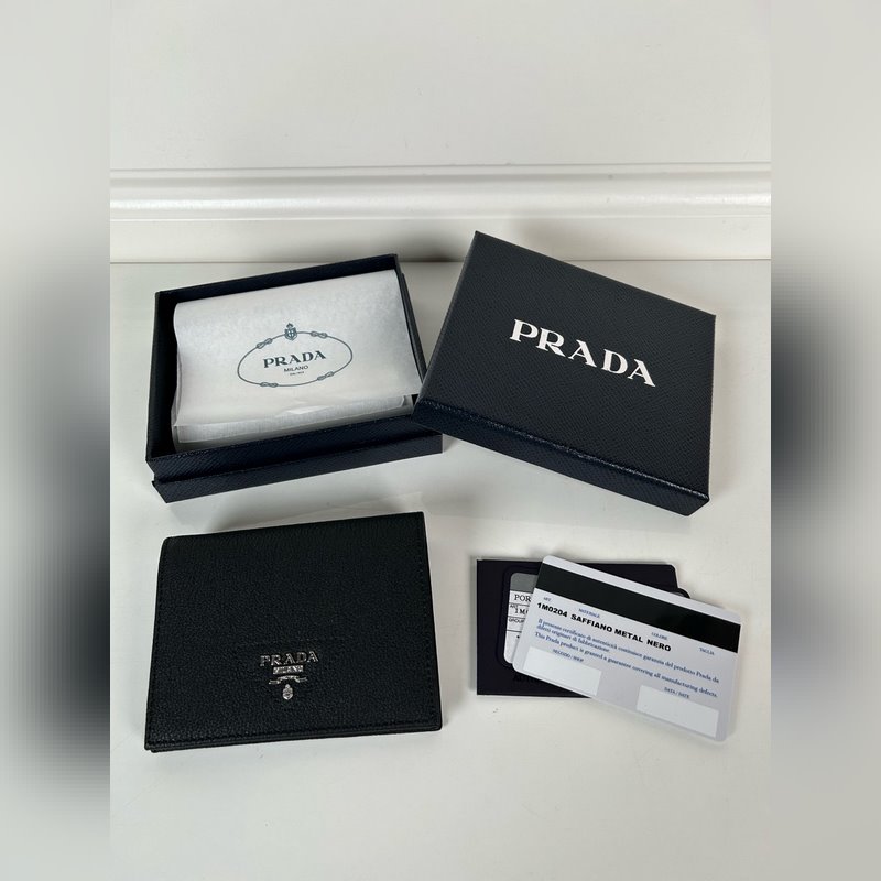 Cartera corta Prada para mujer 1M0204 de piel fina (11,2 cm x 9,5 cm)