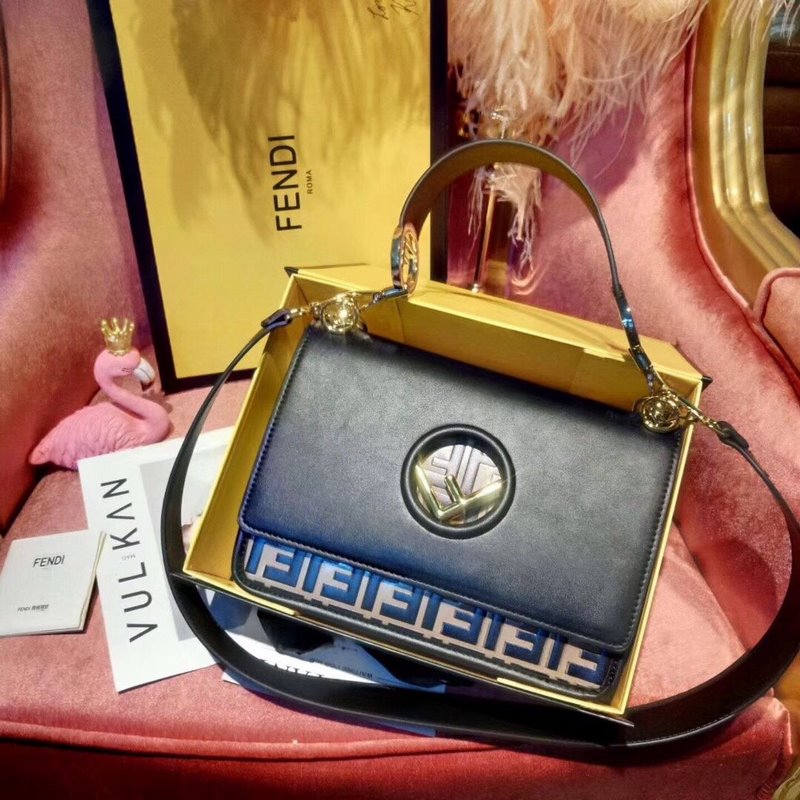 Réplica del bolso de hombro FENDI pequeño presbiteriano de piel negra, diseño curvo femenino
