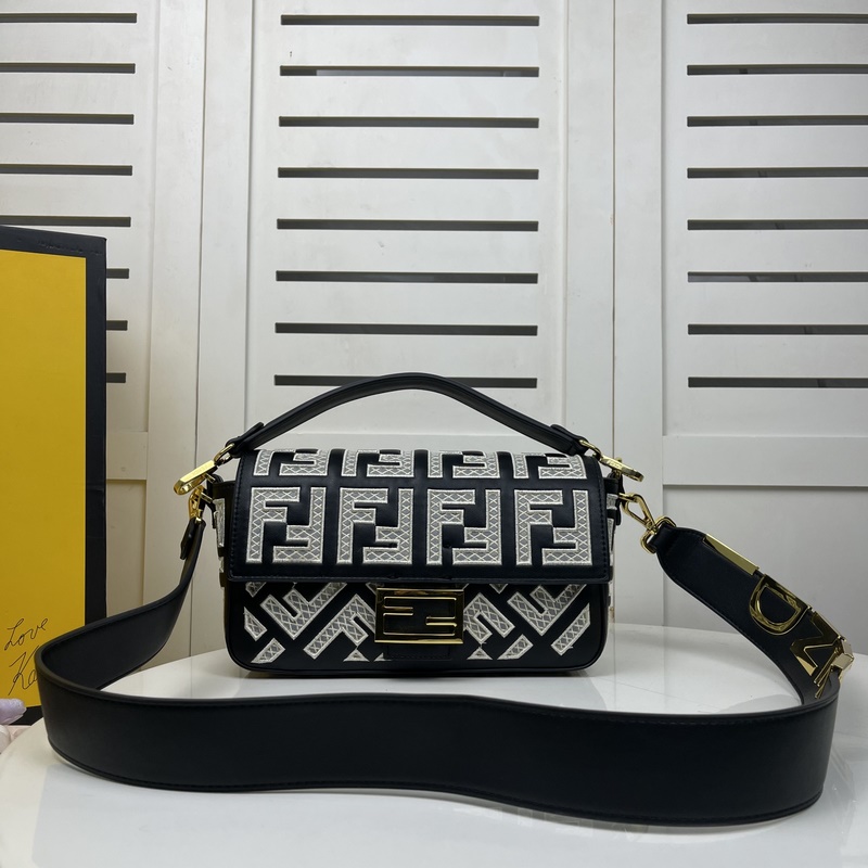 Réplica del bolso baguette de piel de FENDI con bordado FF y diseño recortado
