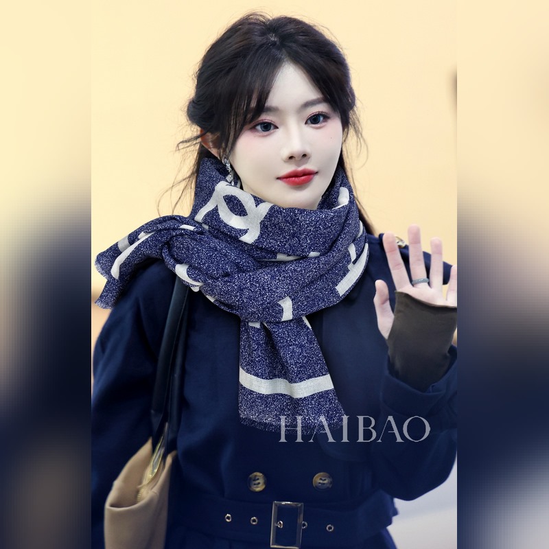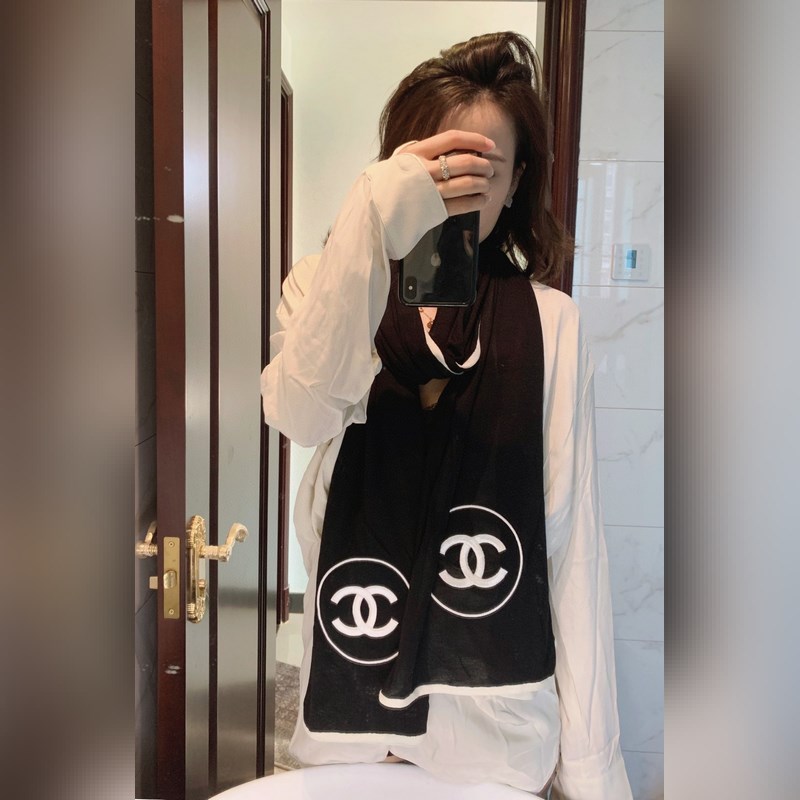 Bufanda larga de cachemira Chanel con logotipo de alta calidad y estilo.