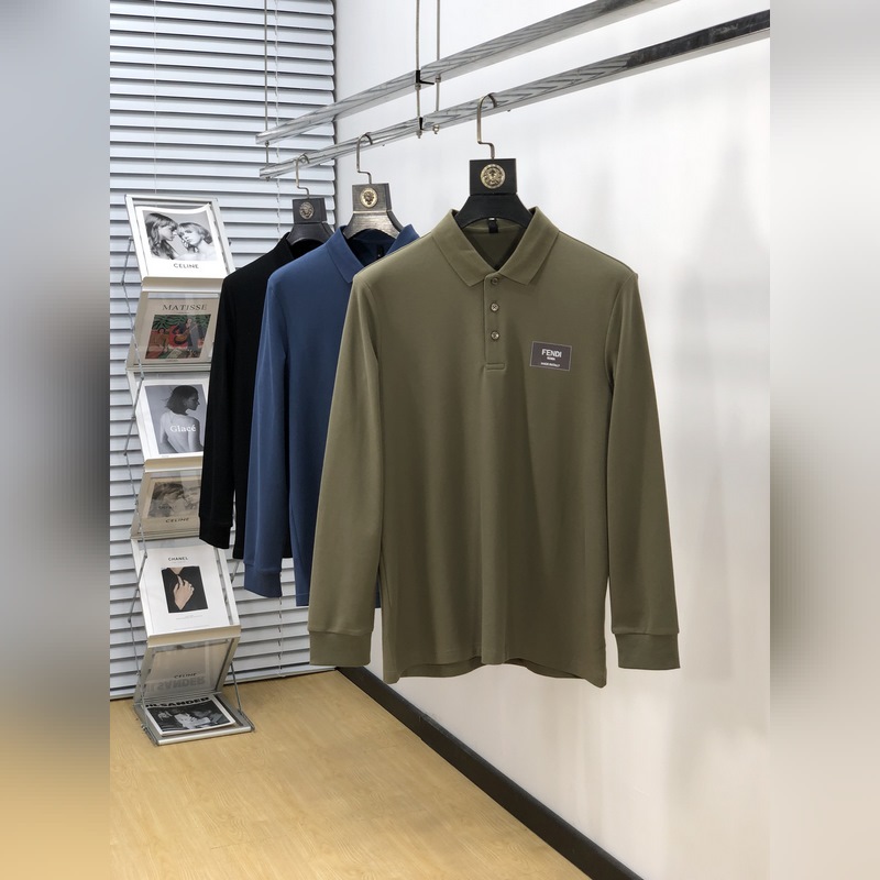 Polo Fendi para hombre, de algodón, informal, de negocios, de manga larga
