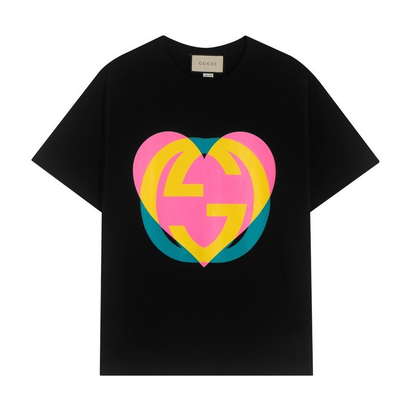 Camiseta de cuello redondo con logotipo de corazón de Gucci para hombre y mujer