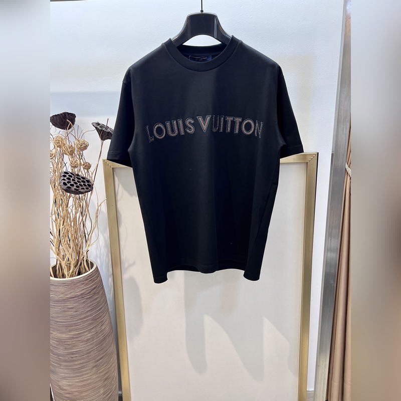 Camiseta Louis Vuitton 1V con bordado de diamantes de imitación, talla 46-48