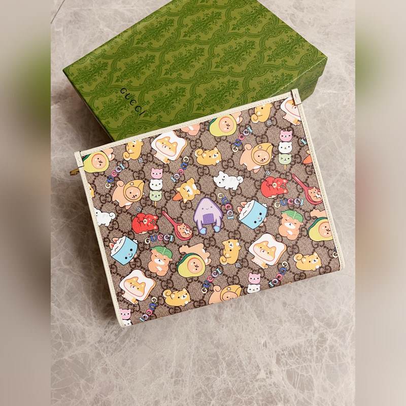 Réplica del último bolso de mano Gucci con estampado de camuflaje de dibujos animados, piel de cerdo blanca 736