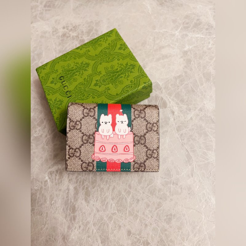 Cartera para tarjetas con diseño de camuflaje de Gucci, de piel con piel de cerdo blanca, de exquisita calidad.