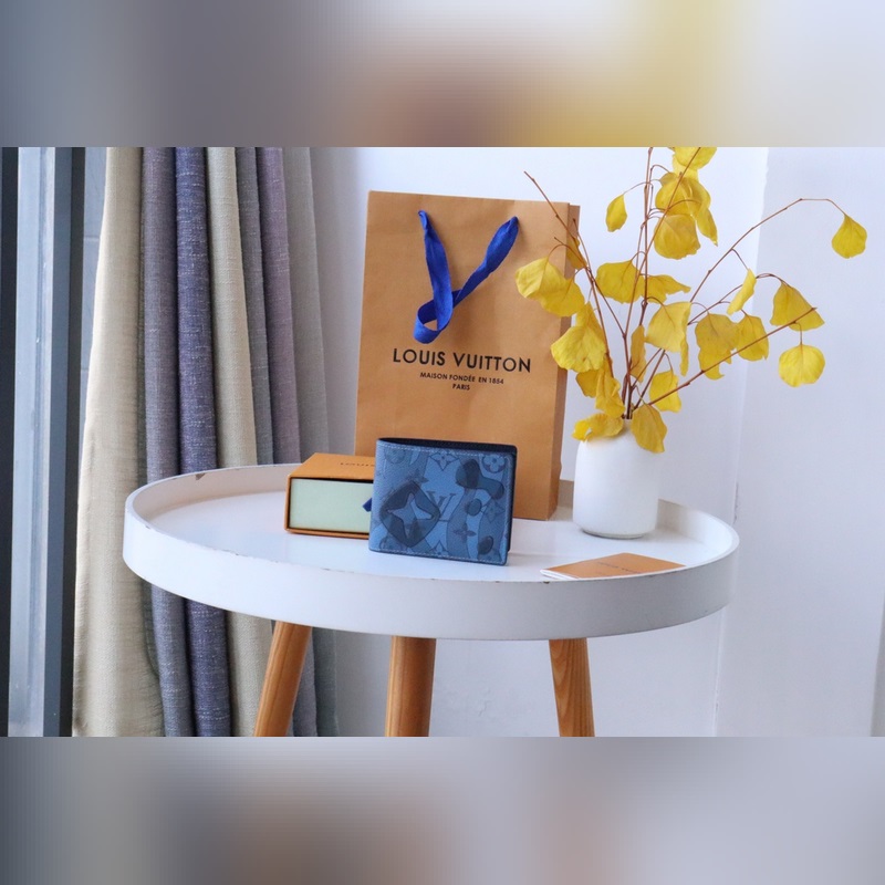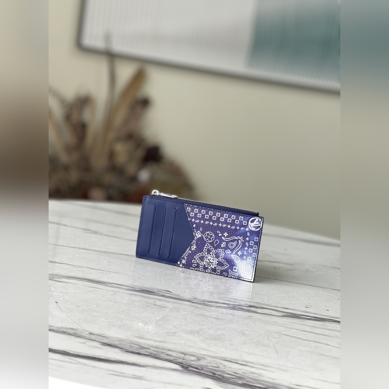 Monedero y tarjetero con diseño floral azul LV M81432