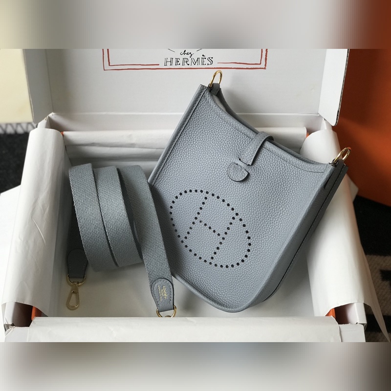 Réplica del bolso cruzado Hermès de lino azul con artesanía de calidad