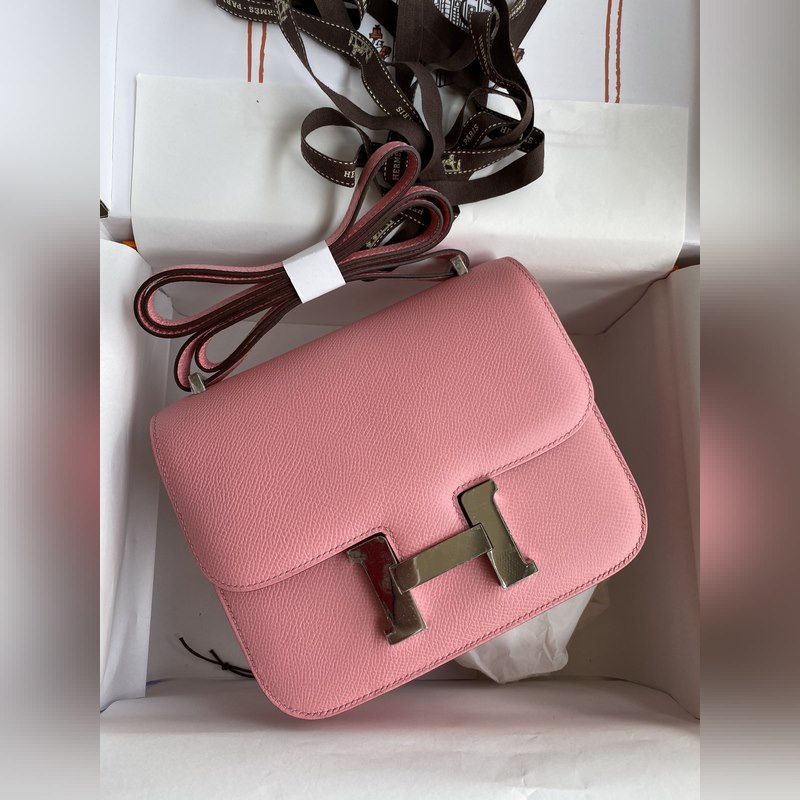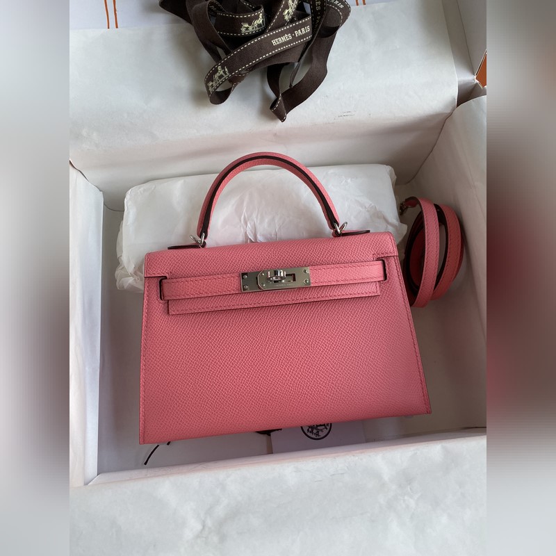Bolso Hermès Mini Kelly de 19 cm, color rosa lápiz labial, cosido a mano, de piel Epsom, con herrajes plateados.