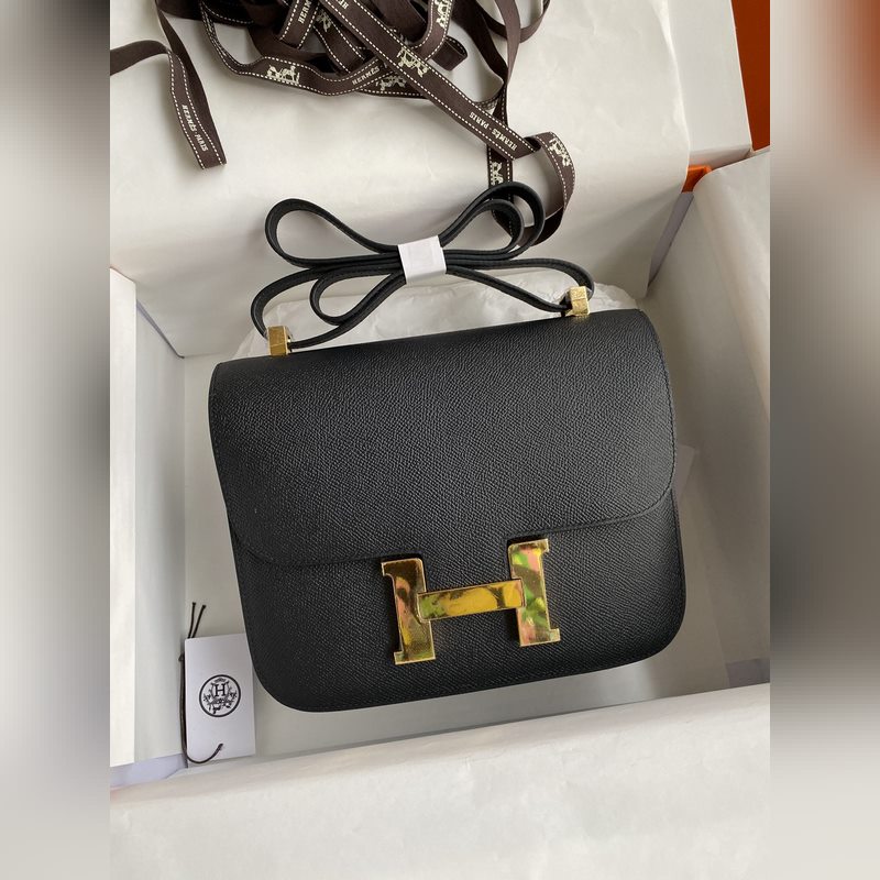 Bolso grande Kangkang de piel Epsom con hebilla dorada y negra de 24 cm