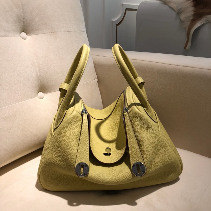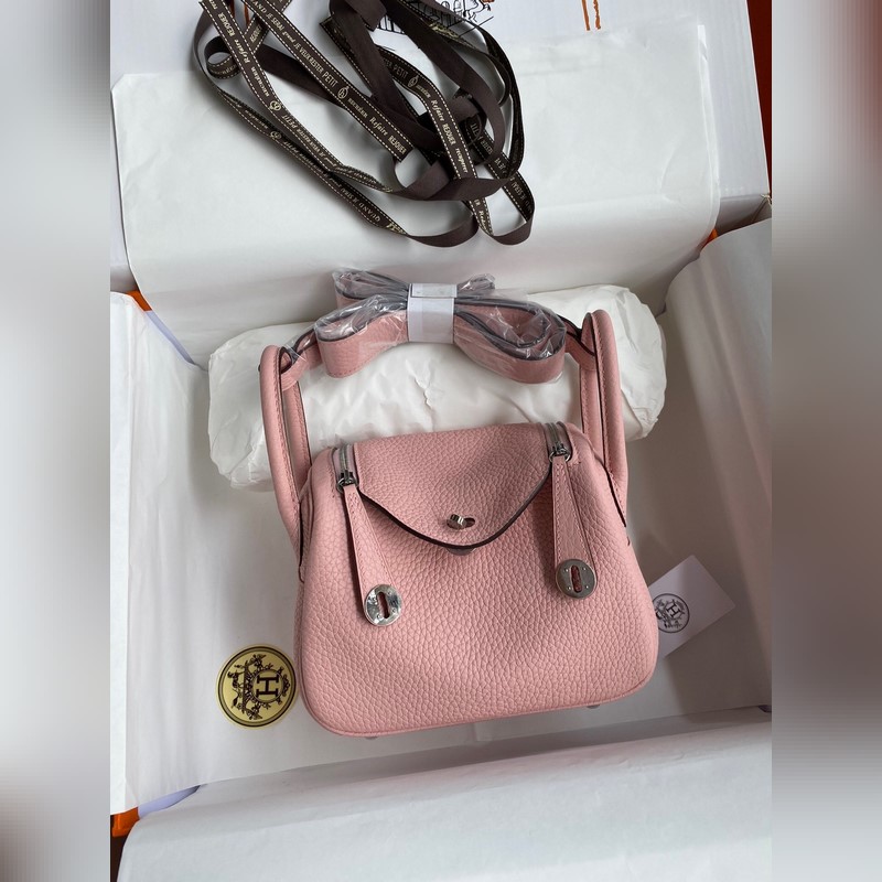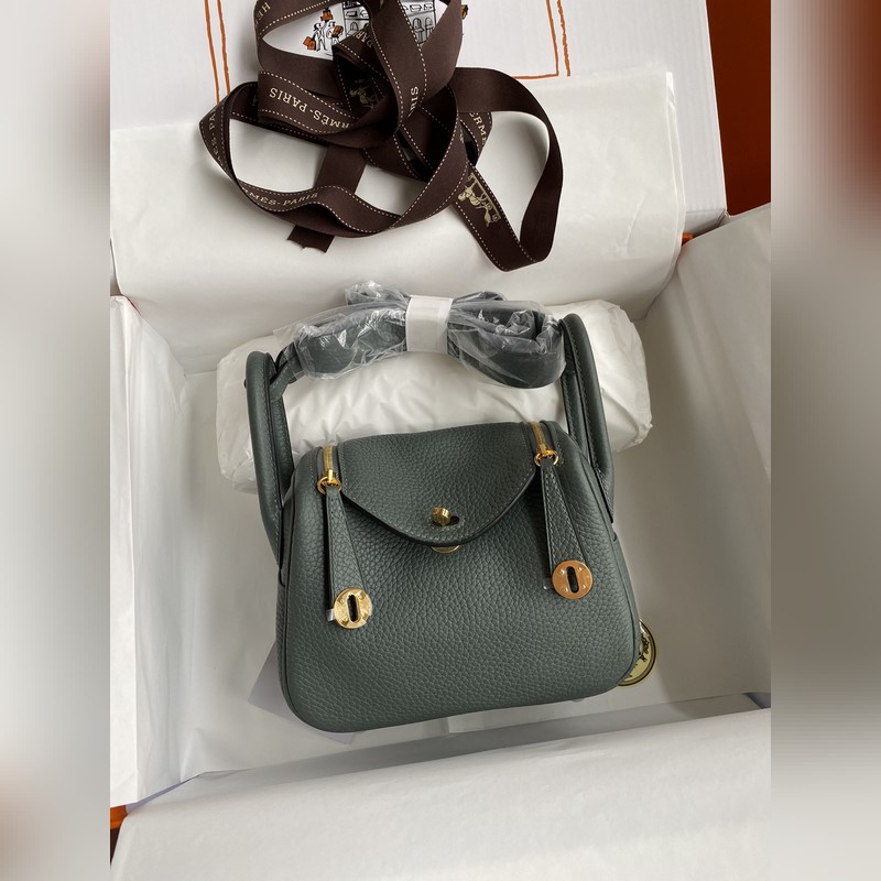 Hermès Mini Lindy 19cm Piel TC Verde Almendra Herrajes Dorados Hecho a Mano