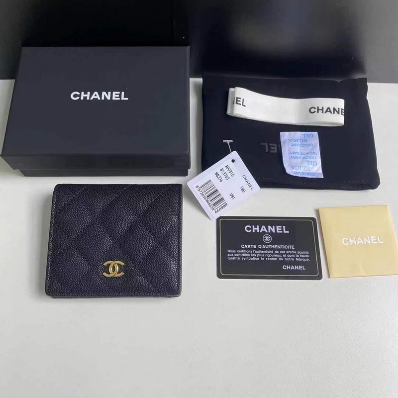 Tarjetero clásico de calidad original de CHANEL en piel de grano fino con estampado de diamantes