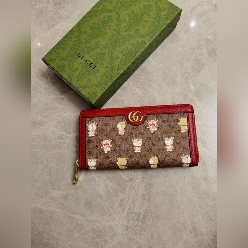 Cartera larga con logotipo manuscrito de Gucci y caja verde original