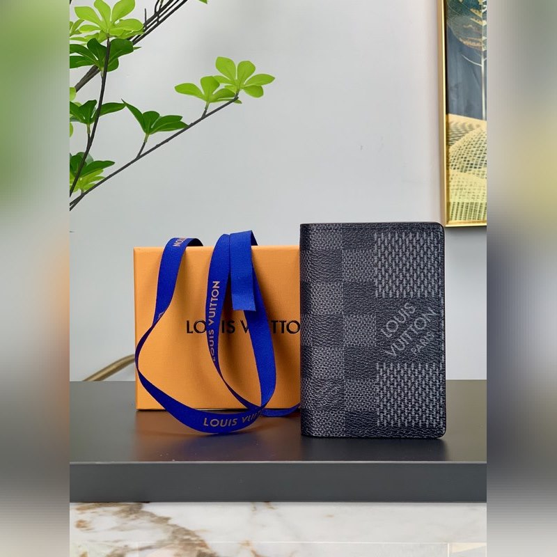Cartera compacta LV N60431 a cuadros negros con bolsillo