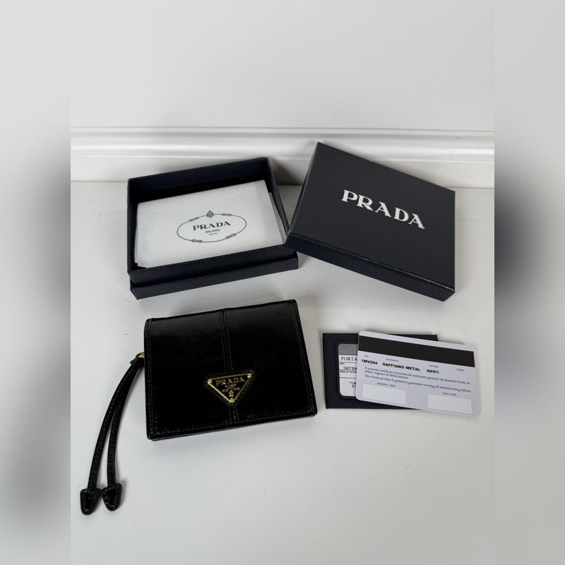 Cartera Prada para mujer 1M0204 de piel engrasada negra (11,2 cm x 9,5 cm)