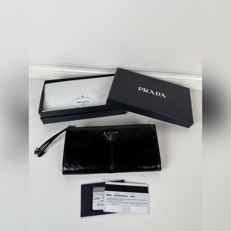 Tarjetero unisex Prada 2MM003 de ante con cremallera e interior plisado