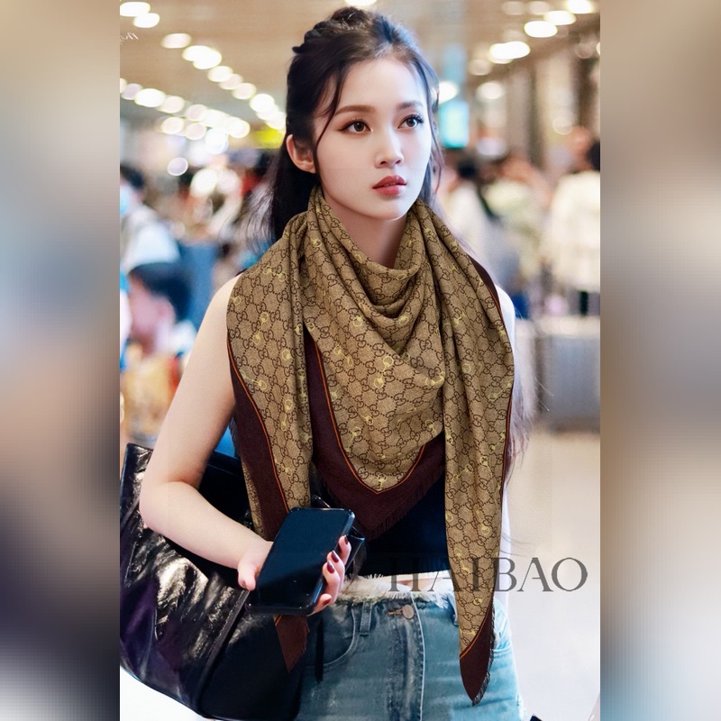 Bufanda de cachemira con bocado de caballo GG de 90 cm con estampado GG clásico y detalles amarillos
