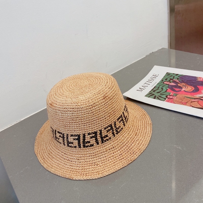 Sombrero de pescador de paja artesanal Fendi FD con logotipo