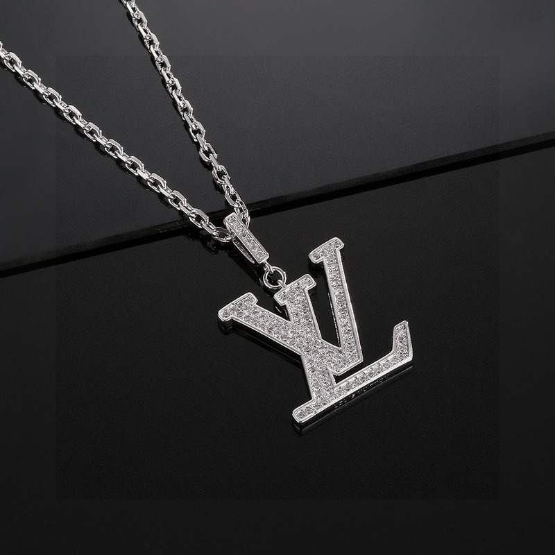 Collar clásico de pareja Louis Vuitton LV con letras de diamantes y exquisita artesanía