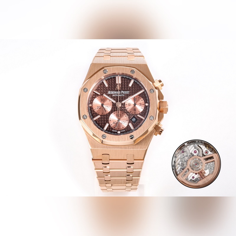 2024 Nuevo cronógrafo AP/Audemars Piguet Royal Oak serie 26240 nuevo, utilizando el mismo original (segundos pequeños de 6 dígitos, movimiento de cronógrafo Calibre 4401 de movimiento de fondo transparente), con cristal de zafiro antirreflejos de alta transparencia, la esfera está decorada con el clásico patrón de cuadros grandes Grande Tapisserie, el acero inoxidable 316 utiliza cepillado satinado y pulido alternados, presentando un efecto mate y brillante, la esfera resistente y atmosférica de 41 mm está llena de potencia y la pantalla superluminosa le permite leer la hora en cualquier entorno.