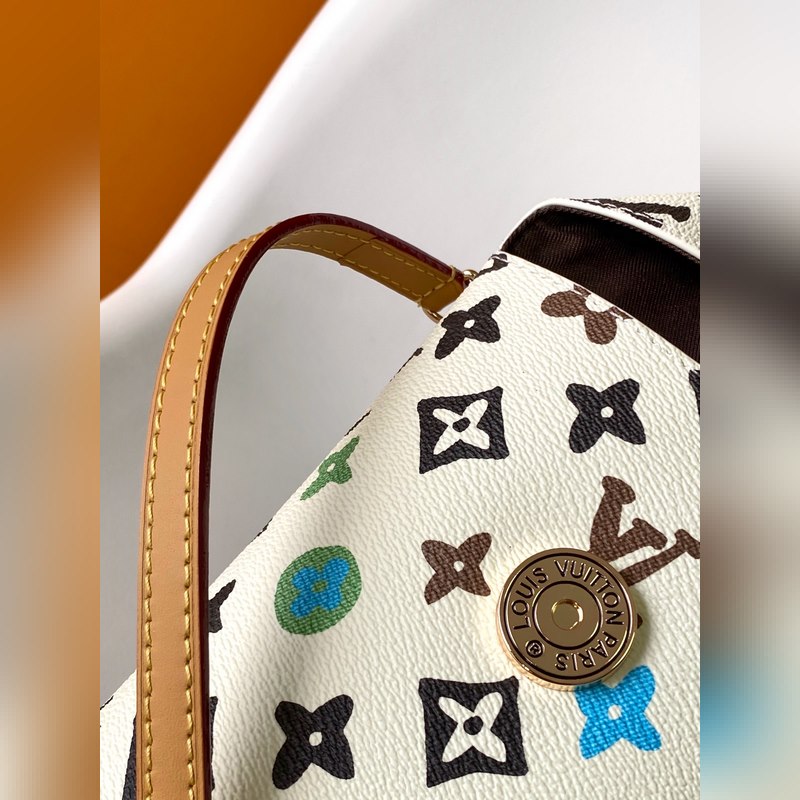 M83344 Bolso bandolera unisex tipo sobre, original, pequeño y exquisito, de color blanco con código variable y parte superior de chip. Fabricado en suave lona Monogram Craggy, presenta la nueva interpretación de Tyler del patrón Monogram. Los botones ondulados, creados por el artista, son el toque final, y su exquisita configuración vertical aporta un toque moderno a tu look diario. 12,5 x 18 x 8,5 cm (largo x alto x ancho).