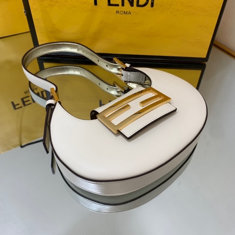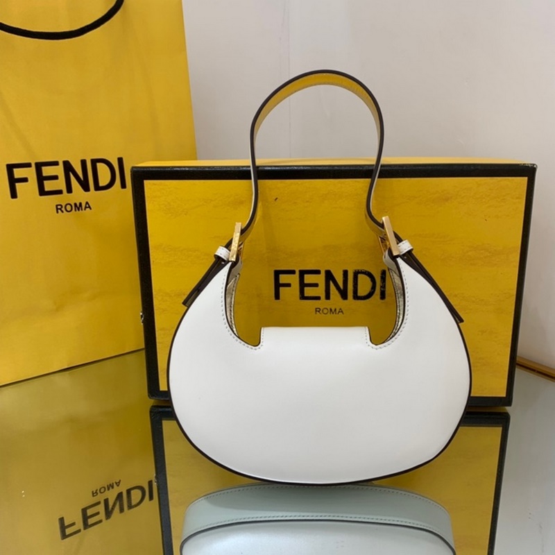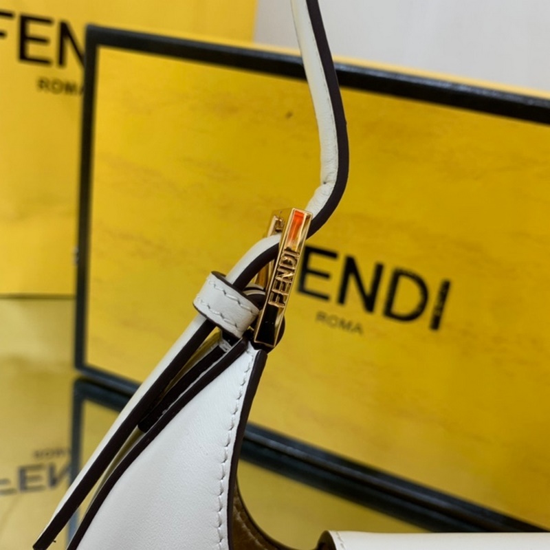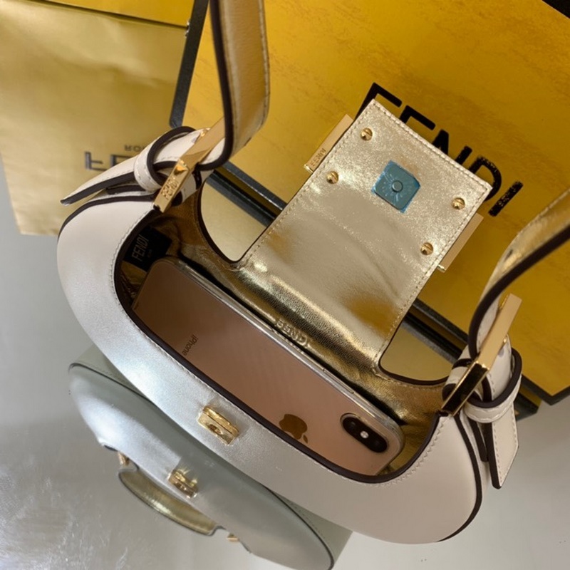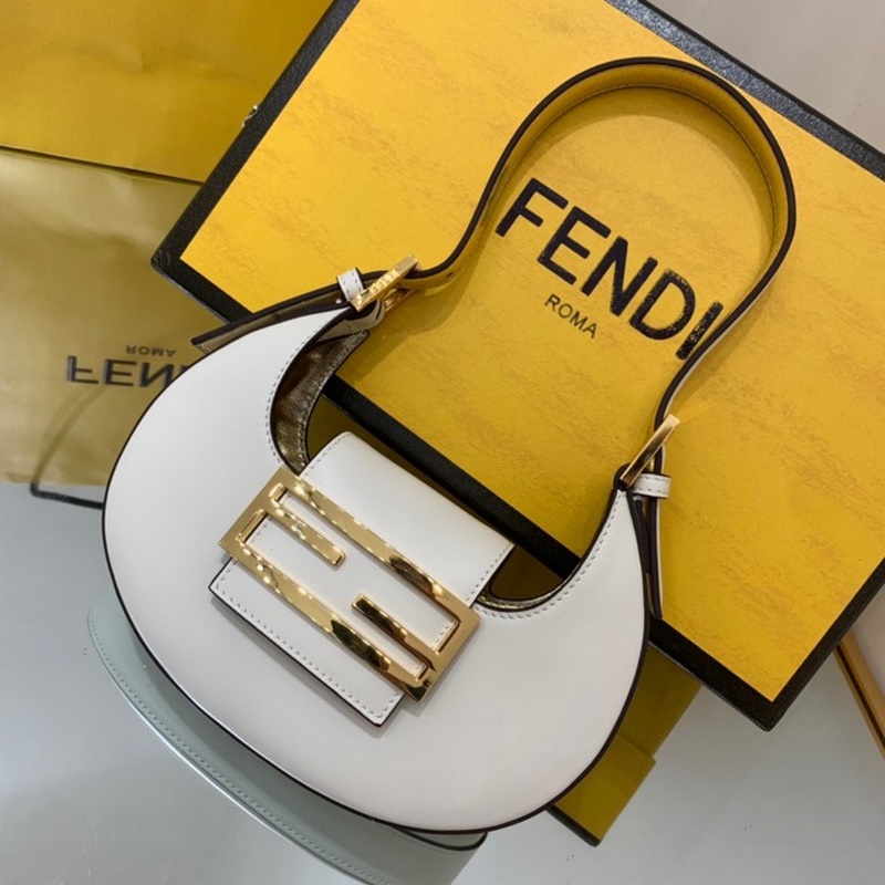 Bolso Mini Crescent de Fendi, fabricado en piel negra. Decorado con hebilla FF, compartimento interior forrado y detalles metálicos dorados. Incluye correa ajustable para llevarlo en la mano. Medidas: 22 x 4,5 x 17,5 cm. Número de modelo: Blanco. Referencia: BD96181100