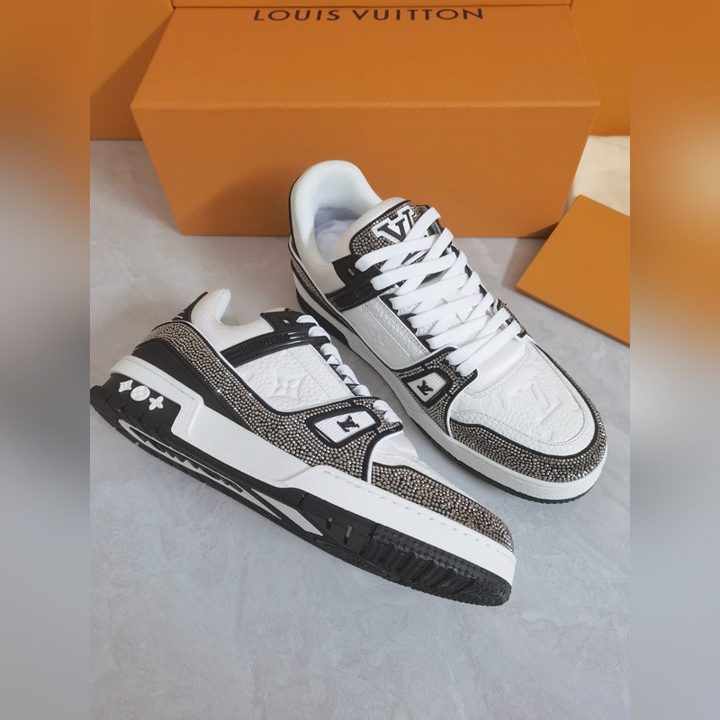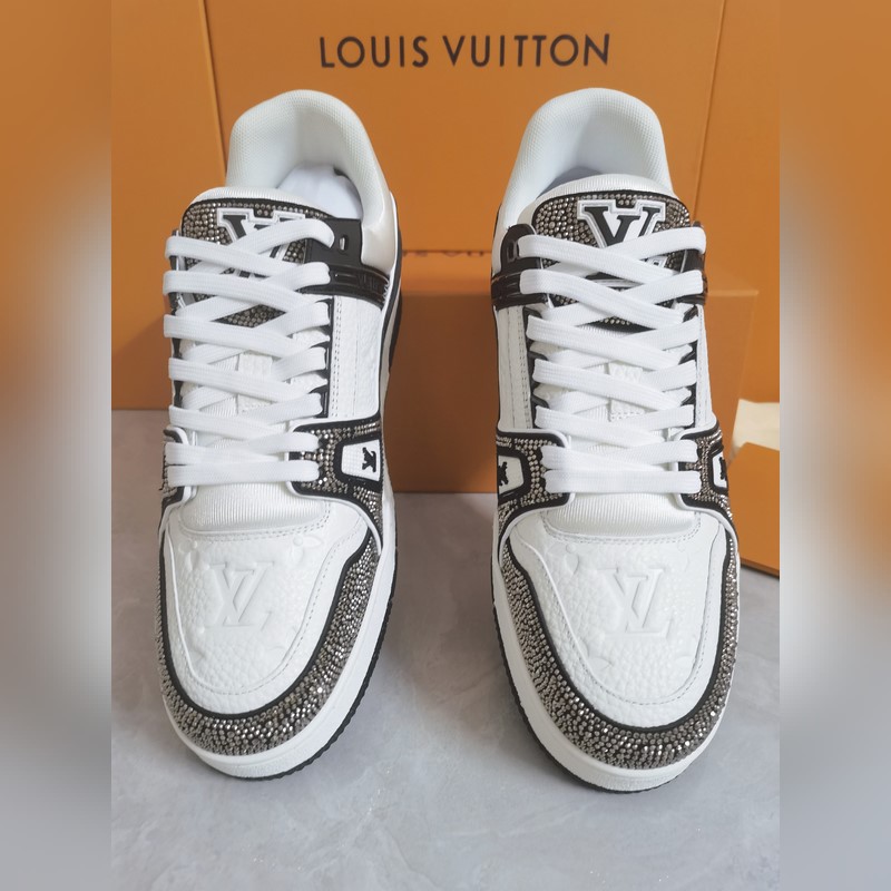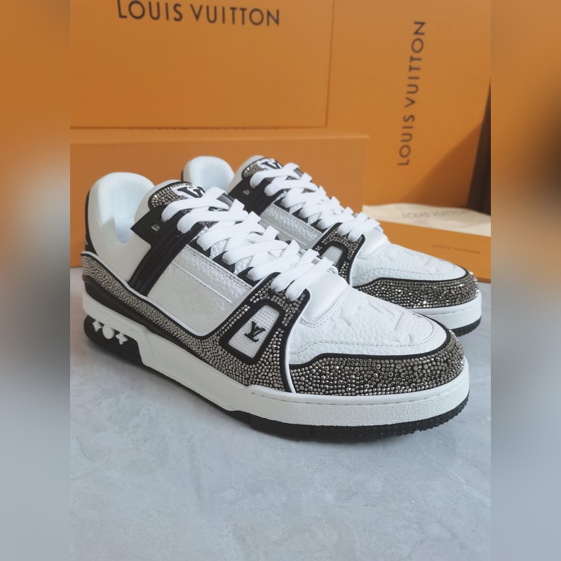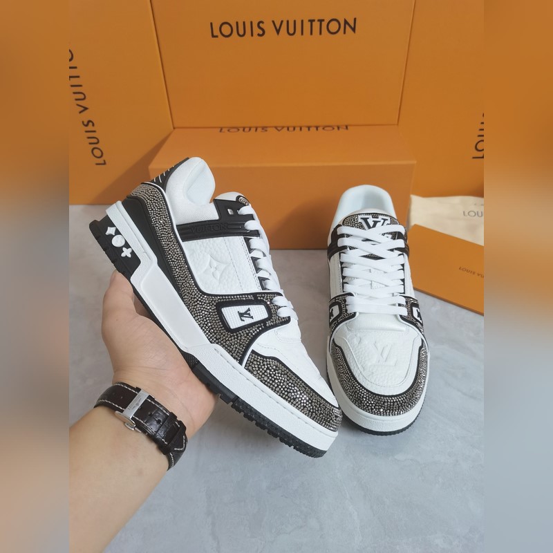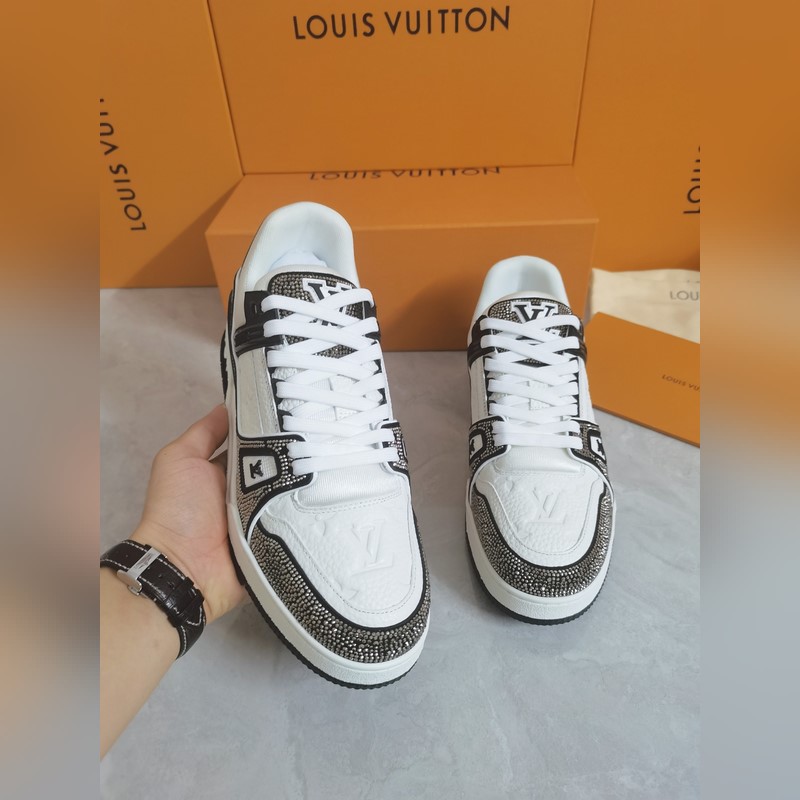Marca de calidad original: LV Trainer brilla con el brillo del cristal artificial, convirtiéndola en otro clásico de la colección de zapatos Louis Vuitton. La parte superior requiere siete horas de trabajo artesanal, mostrando la audaz interpretación de Virgil Abloh de las zapatillas de baloncesto retro desde una perspectiva peculiar. Las letras LV están marcadas en la lengüeta y el lateral, y el logotipo #54 en la parte trasera hace referencia al año de fundación de Louis Vuitton, 1854.