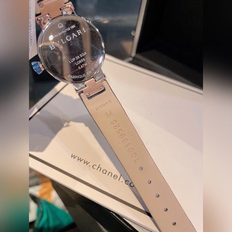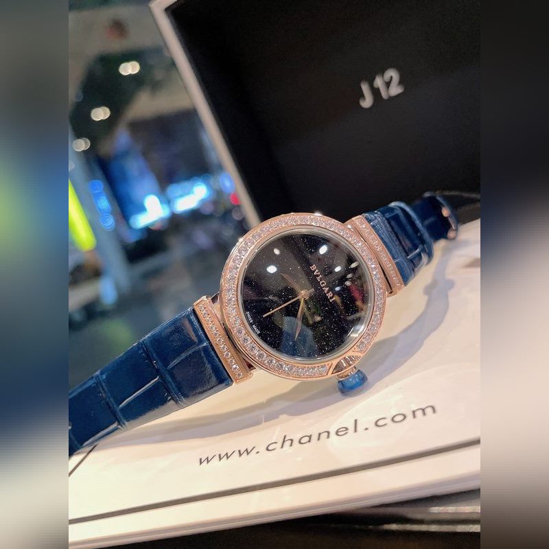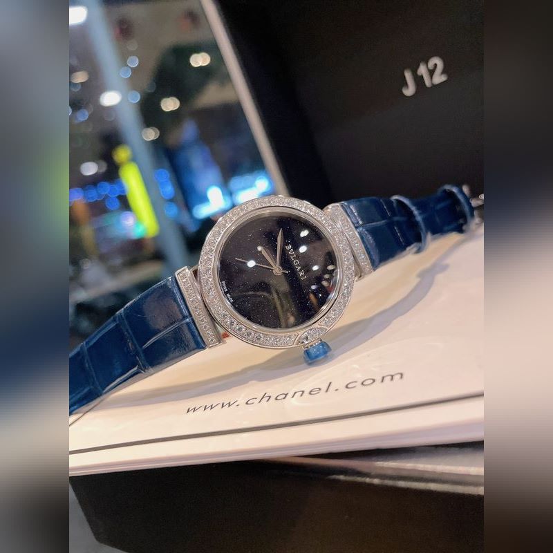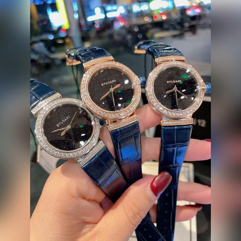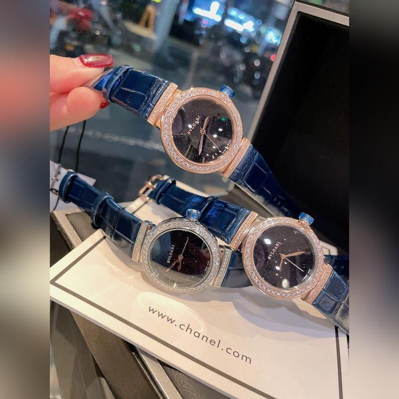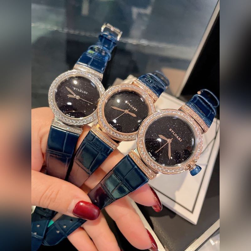 La característica más especial de la serie Bulgari LVCEA es el uso de aventurina azul cristalina para la esfera, combinada con un magnífico bisel con incrustaciones de diamantes, que crea un efecto visual romántico similar al del cielo estrellado. Movimiento de cuarzo importado, espejo de cristal de zafiro arqueado, 33 mm de ancho y 10 mm de grosor.