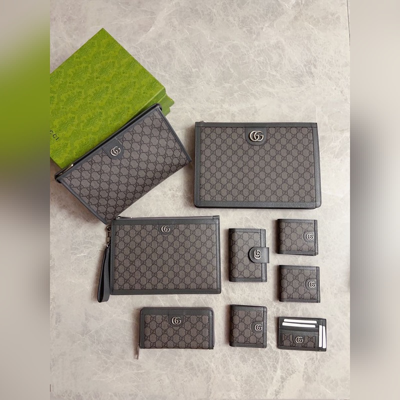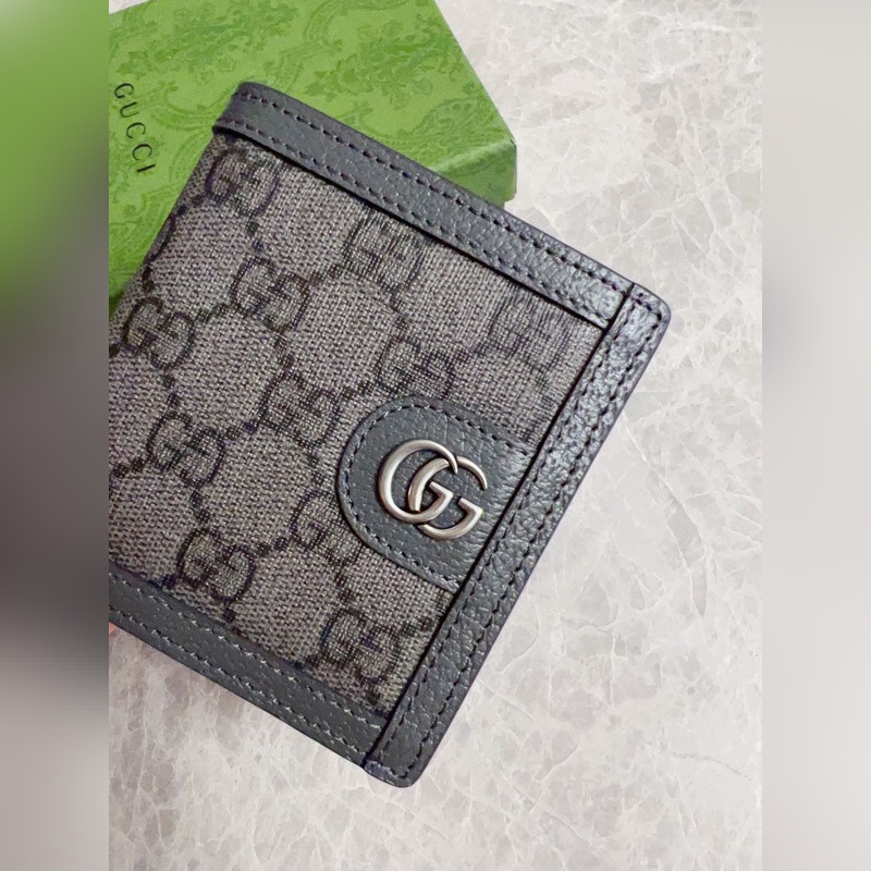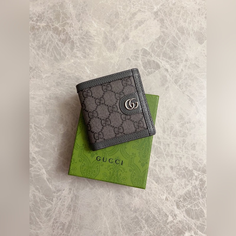 Serie GucciOhidia de carteras de longitud media de última generación. Serie Ohidia de productos individuales con un toque retro infinito. Lona GG Sureme gris, ribete de piel de vacuno gris, accesorios en tono paladio.