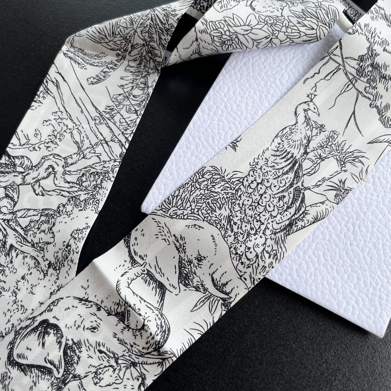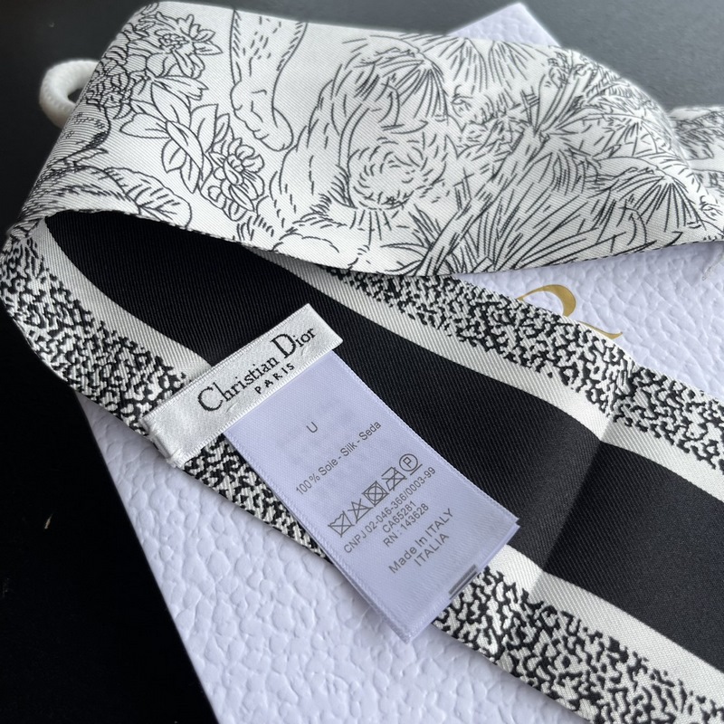 Detalles perfectos. Los diferentes elementos a ambos lados de la cinta son los elementos principales de Dior. Lo recomiendo totalmente. La calidad es excelente. Incluso si no se te da bien, puedes atarlo de forma informal con una cinta de 6 x 150 cm y transmitirá un toque de moda con los detalles.