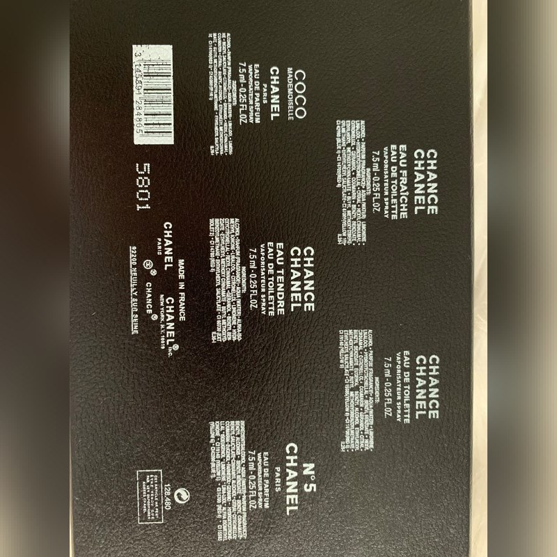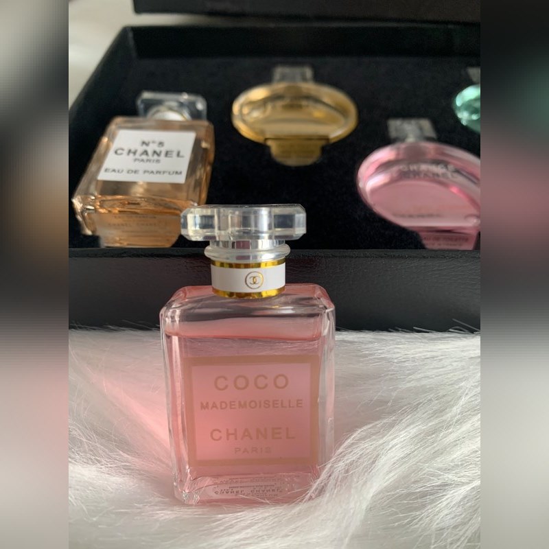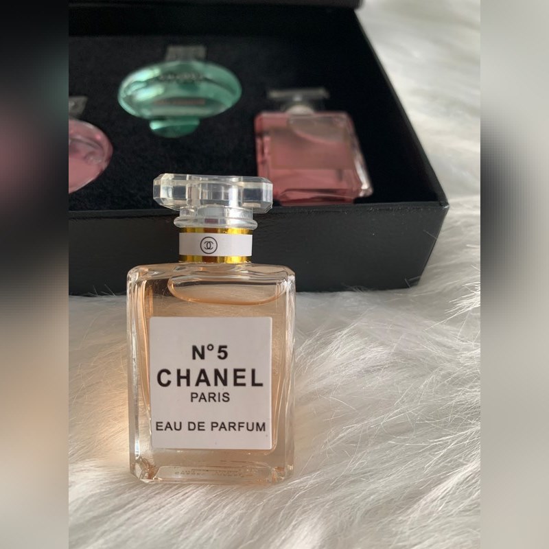 Especificaciones: 7.5 ml × 5 Miss Coco × 1 Eau de Parfum No. 5 × 1 Pink Chance × 1 Green Chance × 1 Yellow Chance