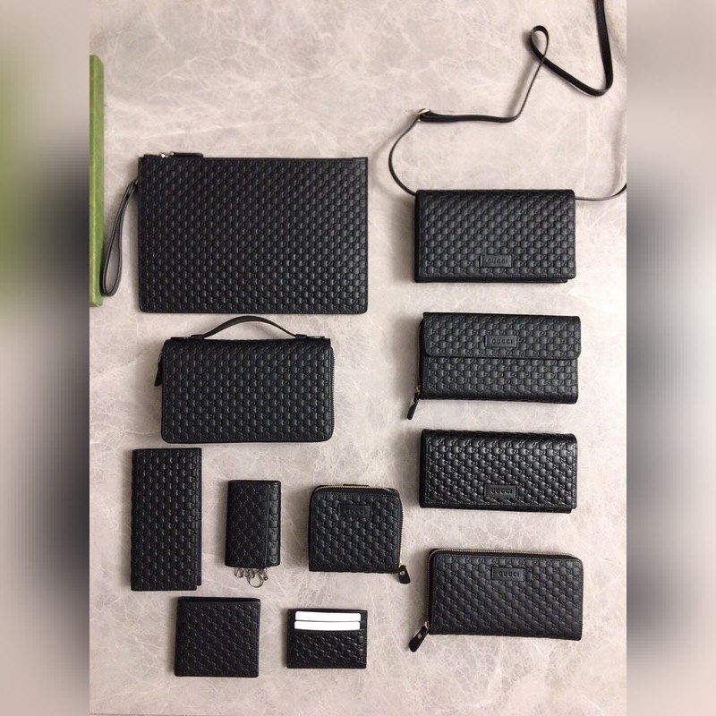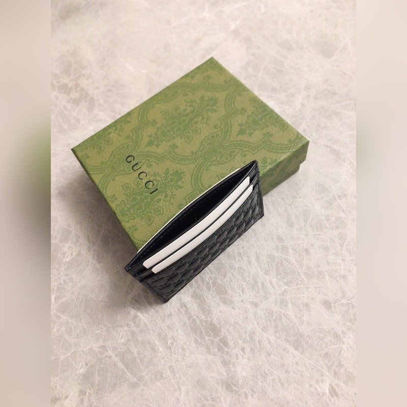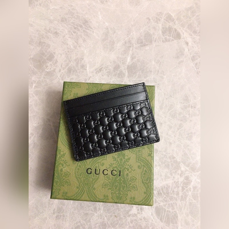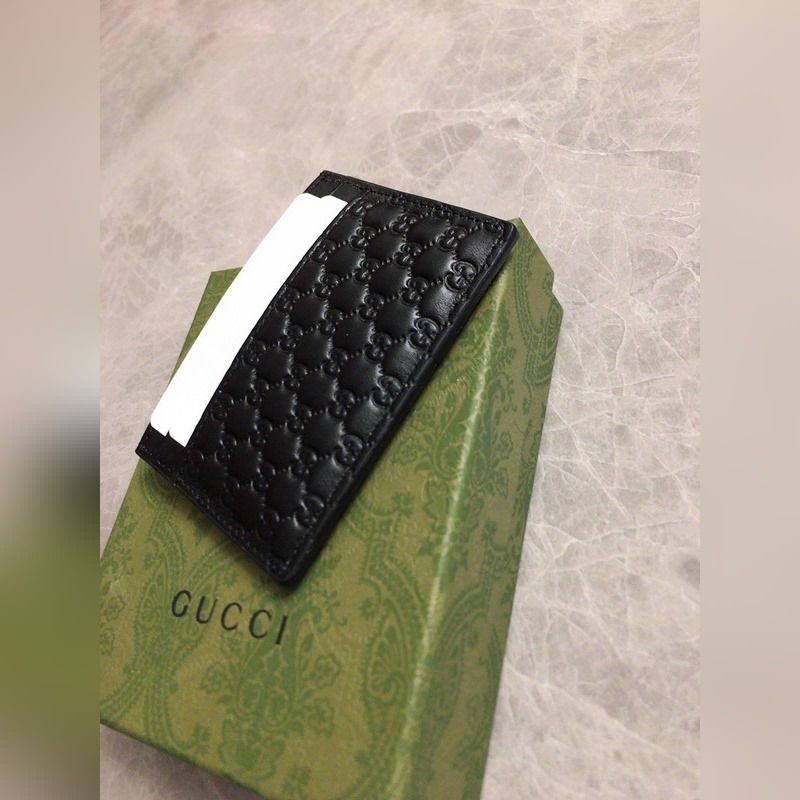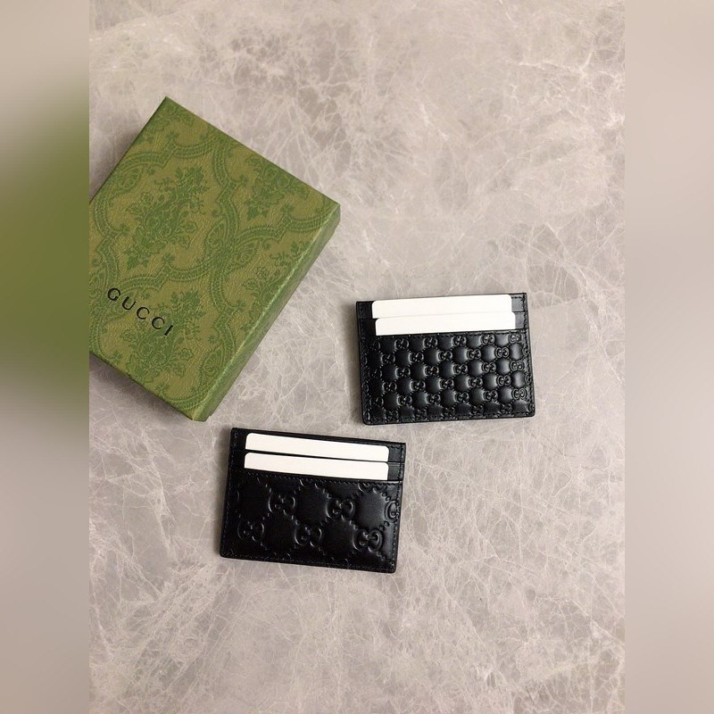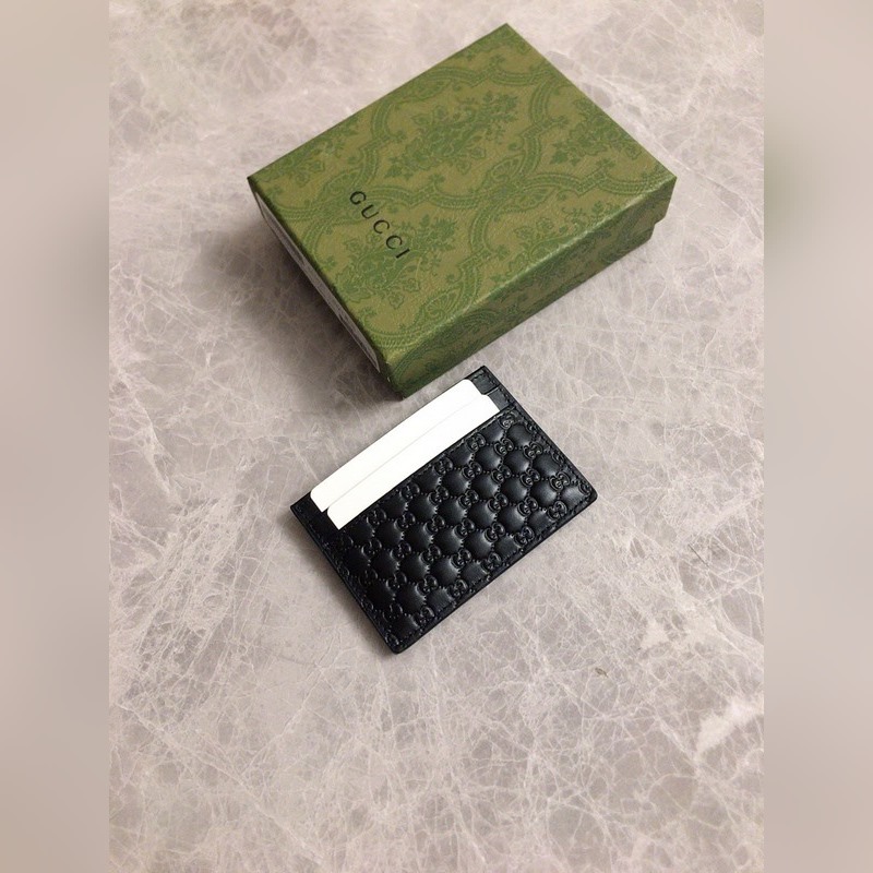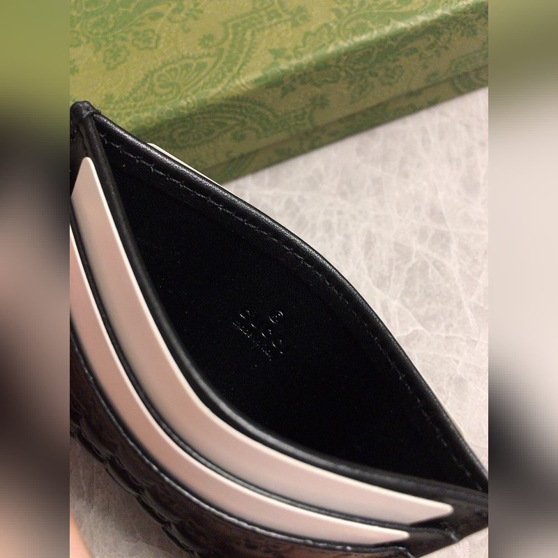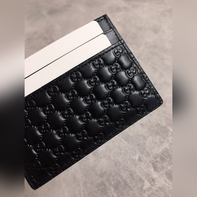Tarjetero GUCCI con relieve. N.º de estilo: 443127. Color: negro con relieve, PVC negro, G pequeña con relieve negro. Tamaño: 10 x 7 cm.