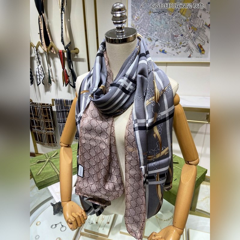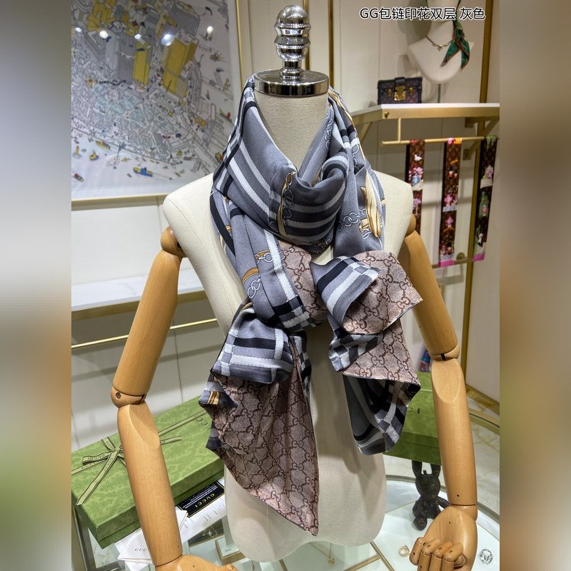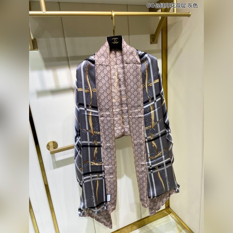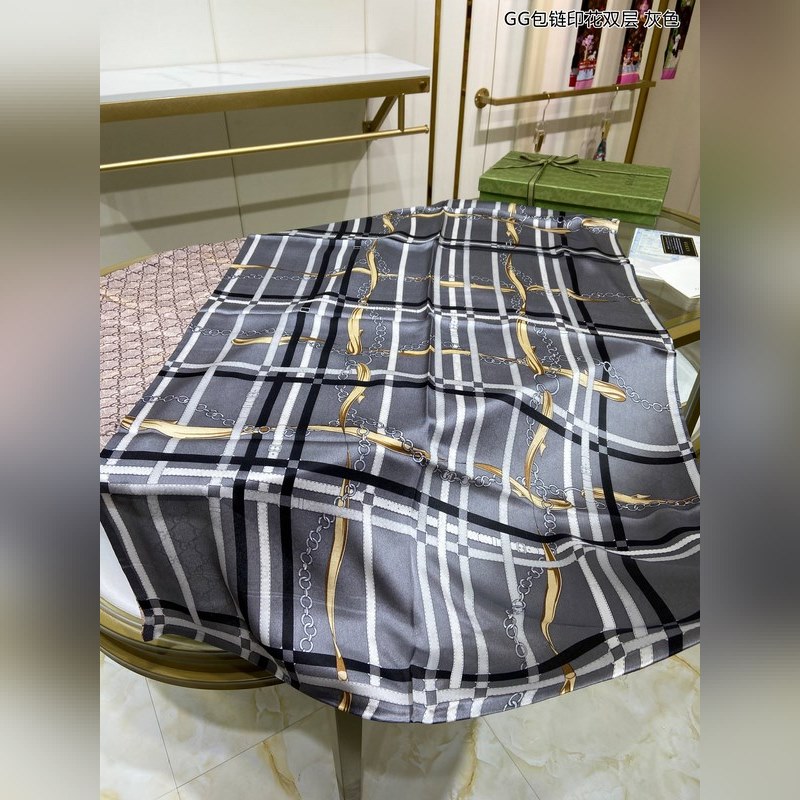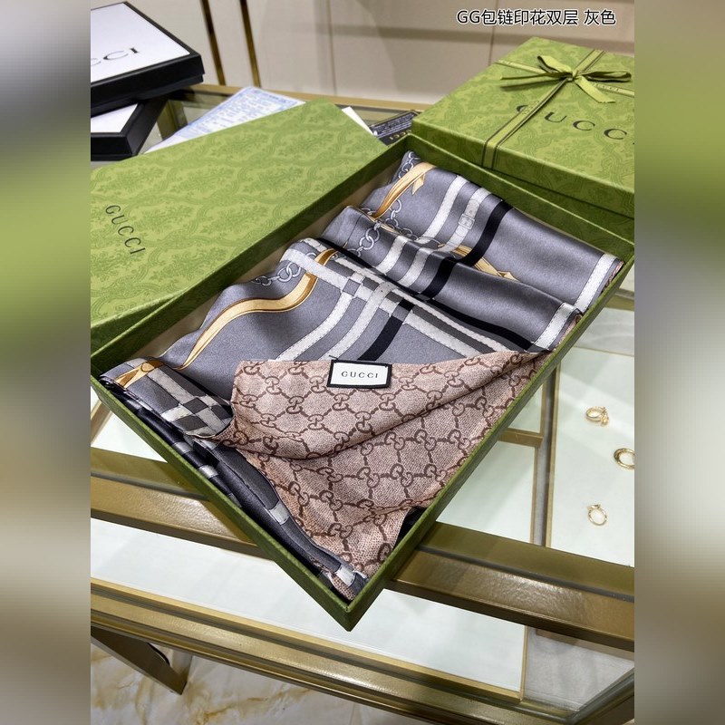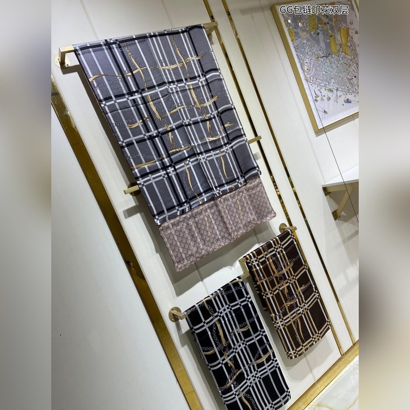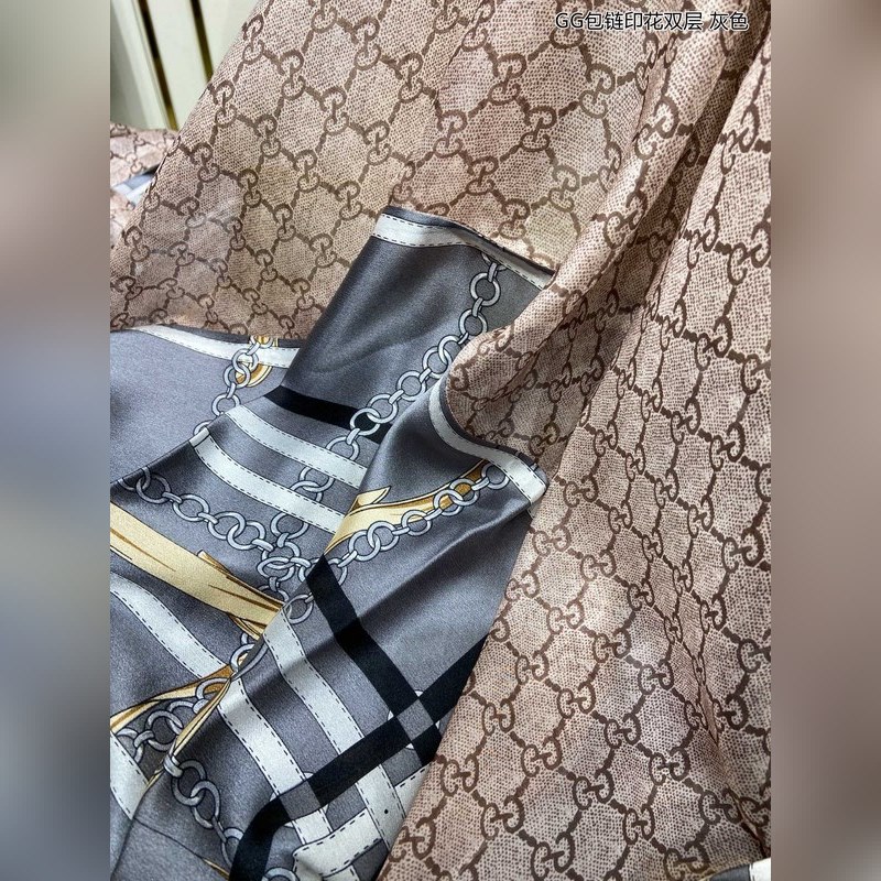 Doble capa: un lado presenta elementos de cadena con la G de moda, el otro lado presenta un estampado GG. La combinación de colores muestra plenamente el lujo, la moda y la nobleza. El producto final está finamente elaborado. Es un artículo de lujo excepcional. No quiero dar más detalles.