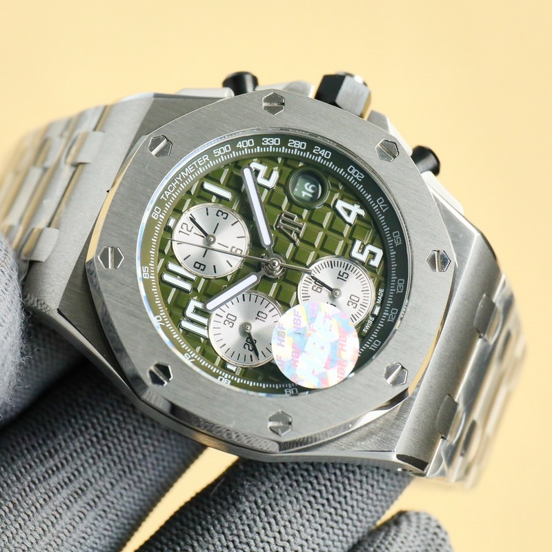 HBF FACTORY Audemars Piguet Royal Oak Offshore Series 26238: La obra maestra definitiva que nunca parecerá falsa a primera vista. Basándonos en la fundación original de JF Factory, nos hemos dedicado a la investigación y el desarrollo para romper barreras. Hemos roto la tecnología de bloqueo original y sincronizado el modelo de cronógrafo exclusivo original con una cabeza suelta. Esto permite que el reloj se ajuste a la muñeca al máximo, mejorando enormemente la comodidad de uso y eliminando también la vergonzosa situación de parecer falso a primera vista. HBF Factory realmente considera la perspectiva de cada amante de los relojes que disfruta de usar relojes. 2. La última tecnología de pulido a nivel CNC se utiliza para procesar perfectamente cada ángulo de toda la caja. 3. Cada tornillo hexagonal está en el mismo plano que el marco, y no se permite ninguna protuberancia o depresión, lo que realmente interpreta lo que es el arte de réplica de nivel superior. 4. La esfera utiliza el clásico patrón de cuadros grandes de Audemars Piguet como fondo, con una disposición de cuadrícula clara. Tras un pulido perfecto, la artesanía del artesano se refleja plenamente. 5. El espejo incorpora una lente de zafiro de doble cara y una correa de caucho fluorado natural. 6. El movimiento incorpora el cronógrafo 3126 original, con segundero pequeño de 12 dígitos, cronógrafo de 12 horas y cronógrafo de 30 minutos a las 6 y las 9, que restaura a la perfección todas las funciones del original. Cada reloj se somete a un control de calidad manual para garantizar la estabilidad del movimiento, que es realmente impecable.