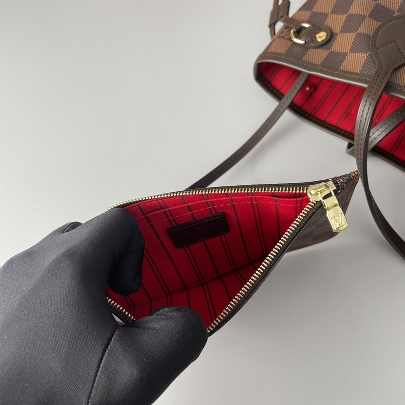 Con empaquetado completo. Original extranjero N41359, imagen real exclusiva. Este pequeño bolso Neverfull combina un diseño clásico con detalles icónicos. Fabricado en lona Damier Ebene, con un colorido forro de tela y ribetes de piel de vacuno, es espacioso pero no recargado. Su diseño ajustado le da un estilo moderno y su elasticidad le da un toque informal. Con un asa fina y cómoda, se puede llevar al hombro o al codo. Se puede usar como bolso de mano o de bolsillo. Medidas: 9 × 21 × 12 cm.