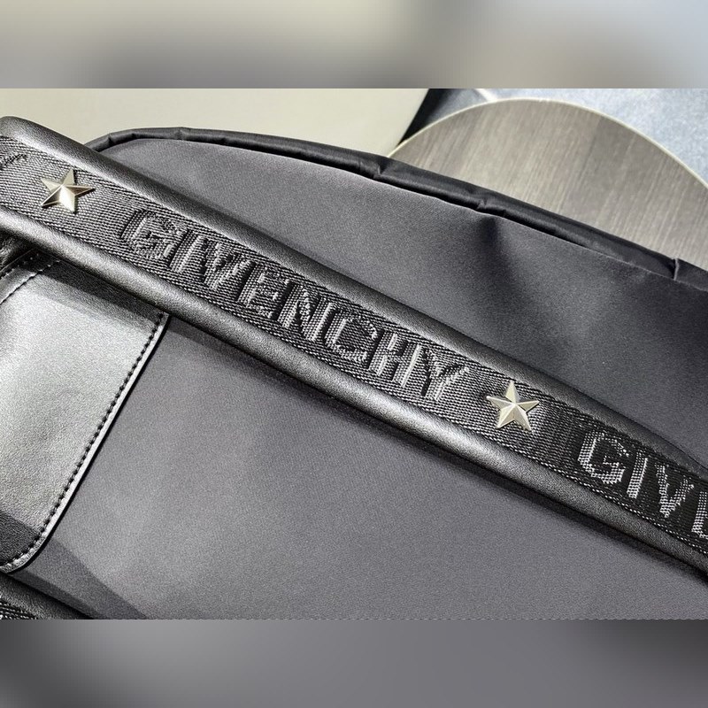 Mochila Givenchy estilo unisex, apta para hombre y mujer. Fabricada en nailon y piel de vacuno. Correas ajustables para mayor comodidad. Tamaño: 35 x 9 x 45 cm.