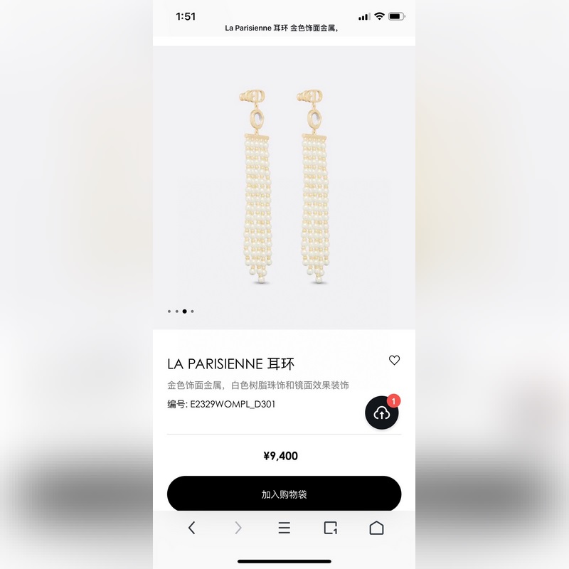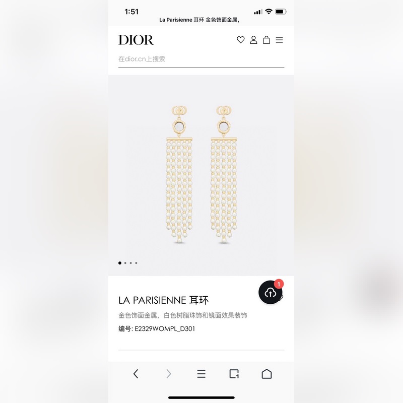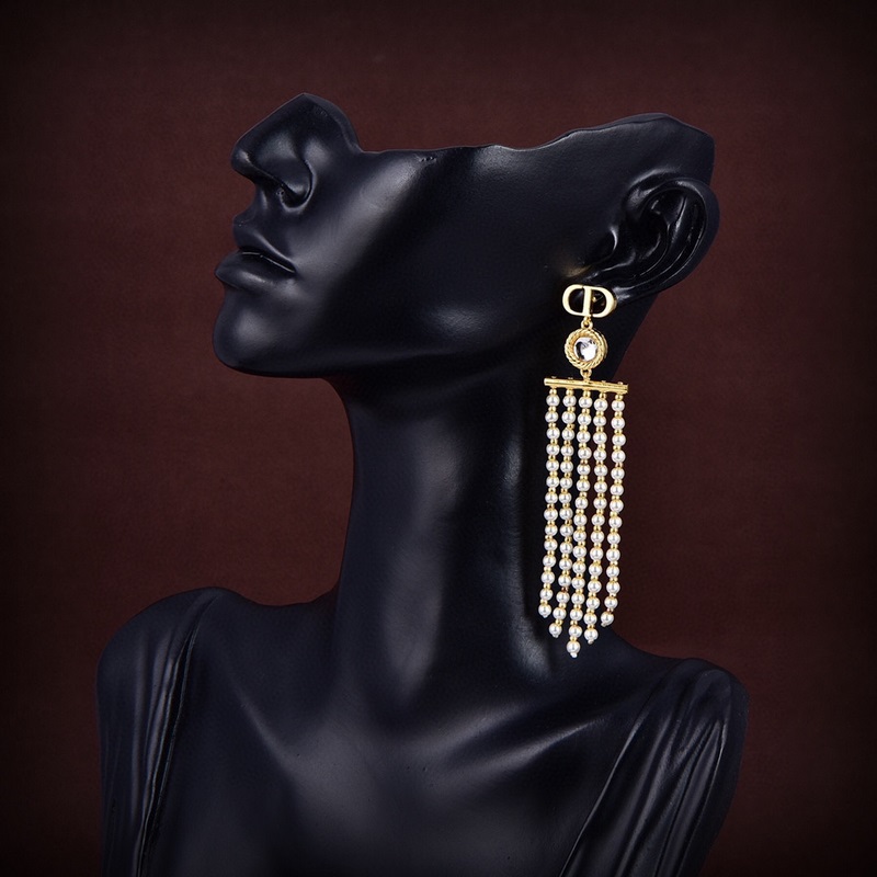 2023 nuevos productos originales nuevos pendientes de perla rosa DIOR Dior mostrador material de latón consistente súper textura