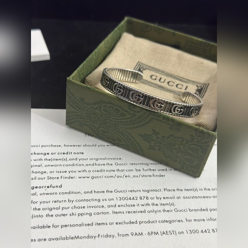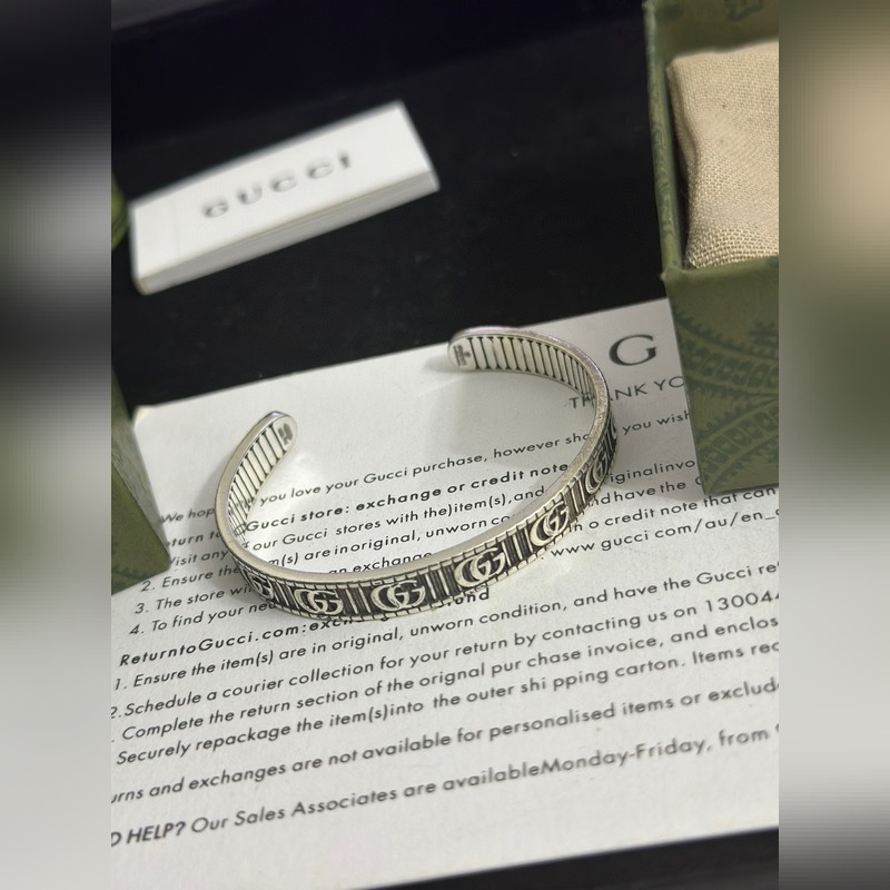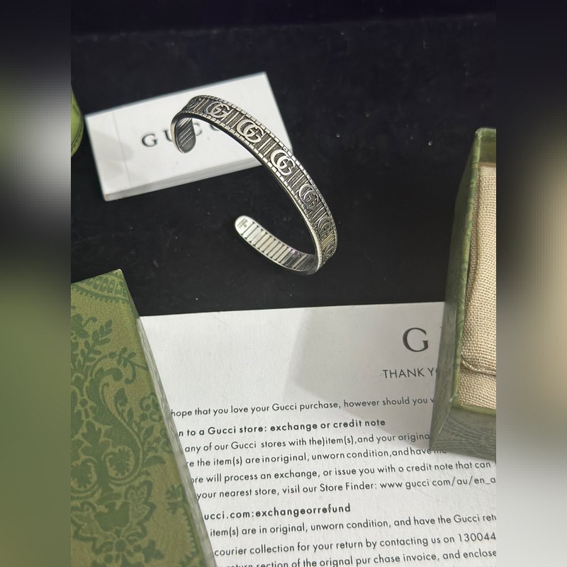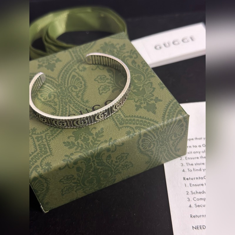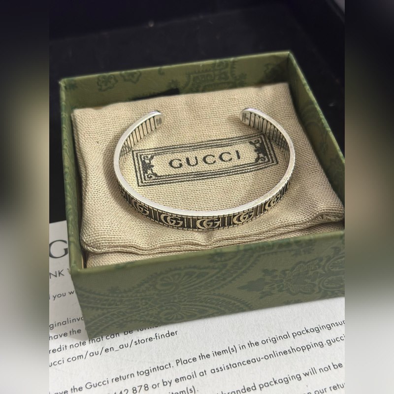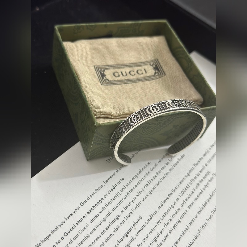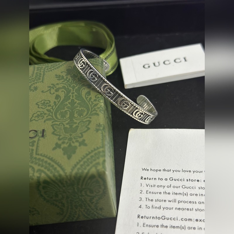 Pulseras Gucci. Las pulseras Gucci son únicas y encantadoras. Las últimas pulseras son de mayor calidad, iguales a las que usan las celebridades. Pulseras Gucci de alta calidad, con esmalte clásico de doble G, de plata retro y ensanchadas, de la serie Anger Forest. Los detalles tienen un tratamiento anticuado. No es la versión brillante del mercado. Este modelo ha estado en oferta. Es un éxito de ventas en Gucci. Es muy fácil de combinar con ropa de moda.