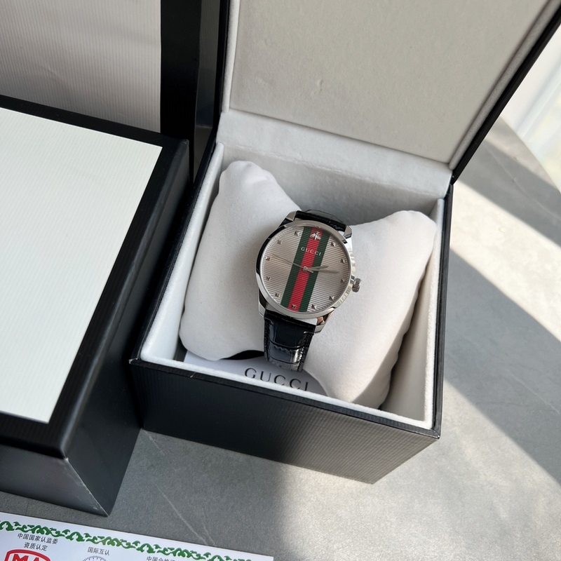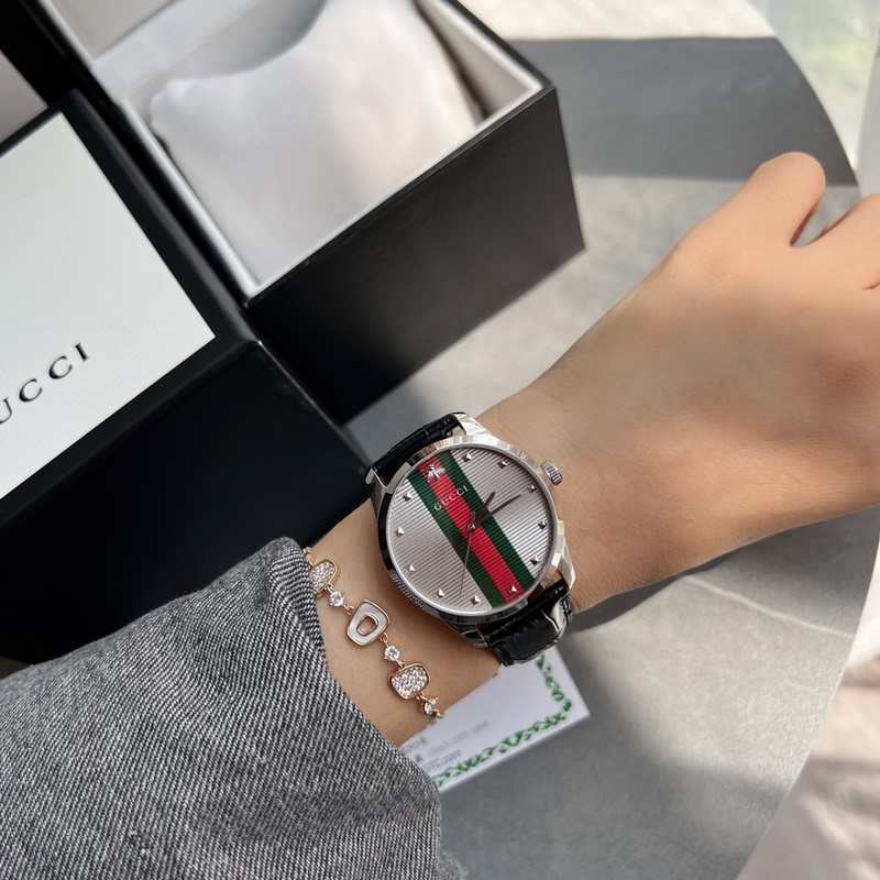 Serie Gucci G-Timeless YA1264123/YA126284, como elementos icónicos de la marca, la clásica cinta roja y verde y la serpiente coral se presentan de una manera única en este reloj de la serie G-Timeless, enrollándose a lo largo de la pulsera de malla de acero inoxidable hasta el centro de la esfera, creando una forma de reloj sobresaliente. Material de acero inoxidable 316, diseño de caja redonda, no solo la curva de muñeca suave adecuada, sino que también tiene un estilo encantador redondo y elegante. Tamaño 38 mm * 45 mm * 10 mm