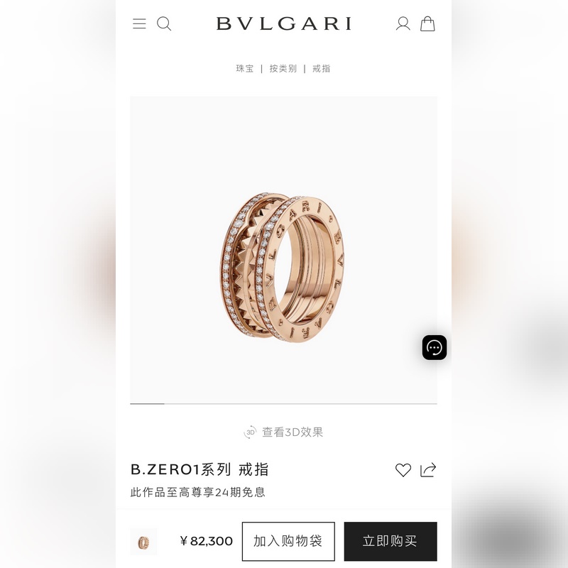 Anillo de diamantes de triple capa Bvlgari Serpenti, versión de máxima calidad