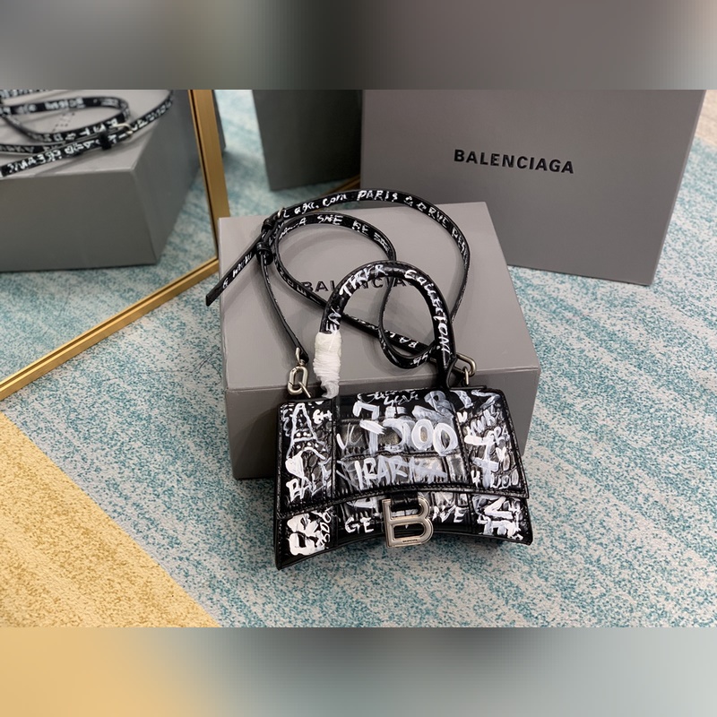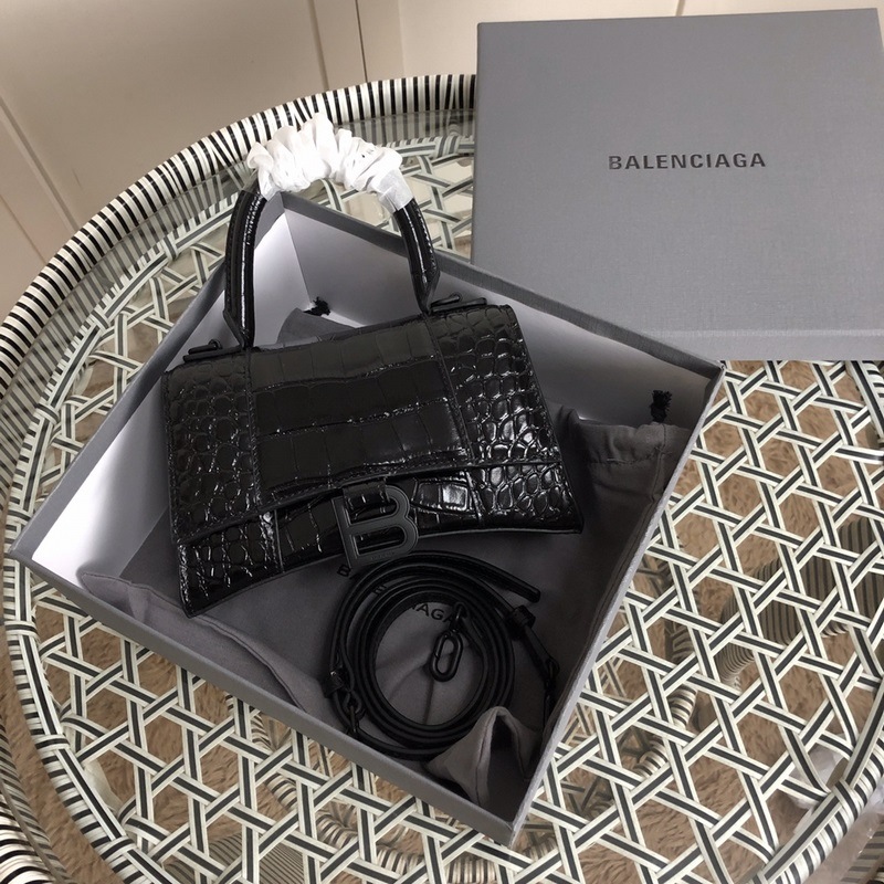 Bolso Balenciaga XS réplica de reloj de arena con relieve de cocodrilo, hecho a mano, de primera calidad.