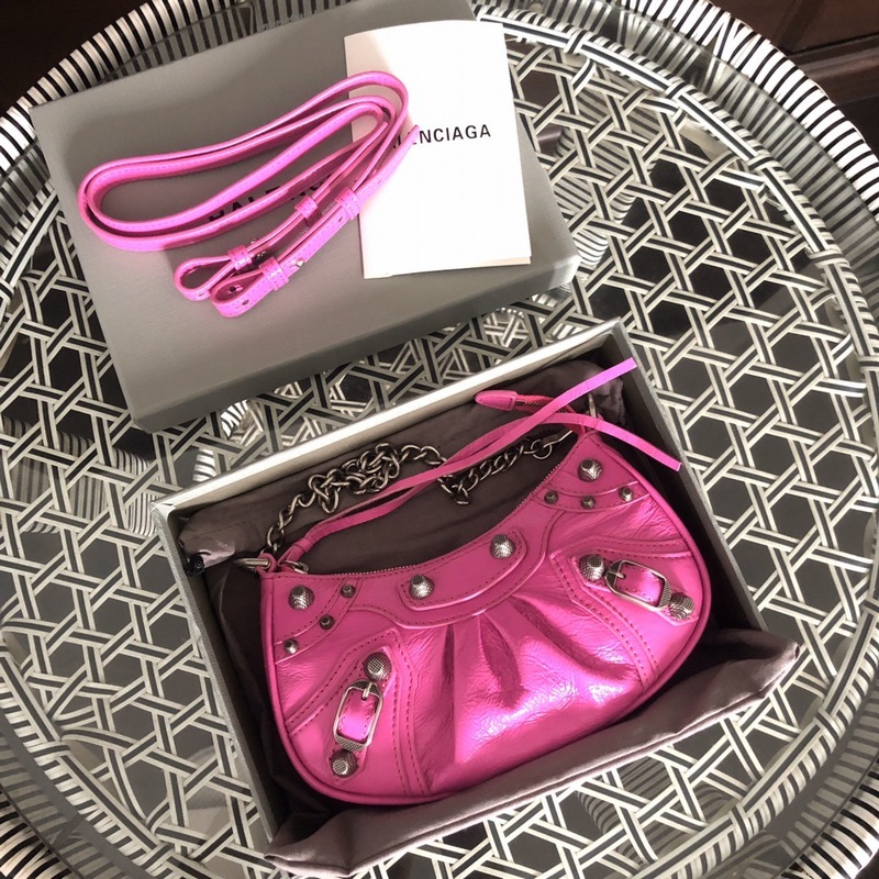 Bolso Balenciaga de piel de cabra rosa para motocicleta con tachuelas doradas, tamaño mediano